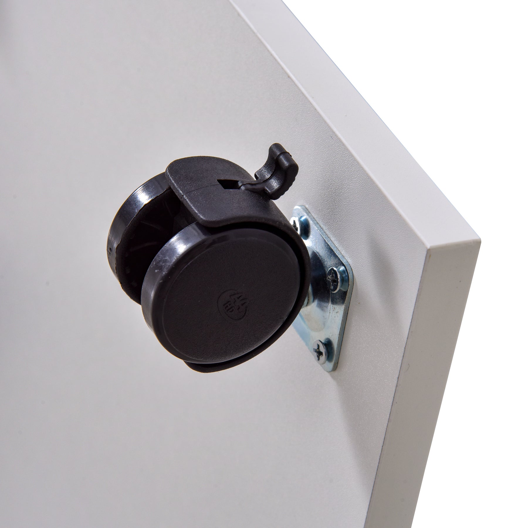 Let the unique design of this 'C' table, from HOMOM, lead the way for keeping your home tidy. Featuring two open shelves for storage and display. The open end can be used as both extra storage and slotting into spots to extend the surface space, with the four wheels allowing it to move easily; two can be locked to keep the table in place. It's finished with a melamine coating, making it smooth, protected against light markings and easy to clean.