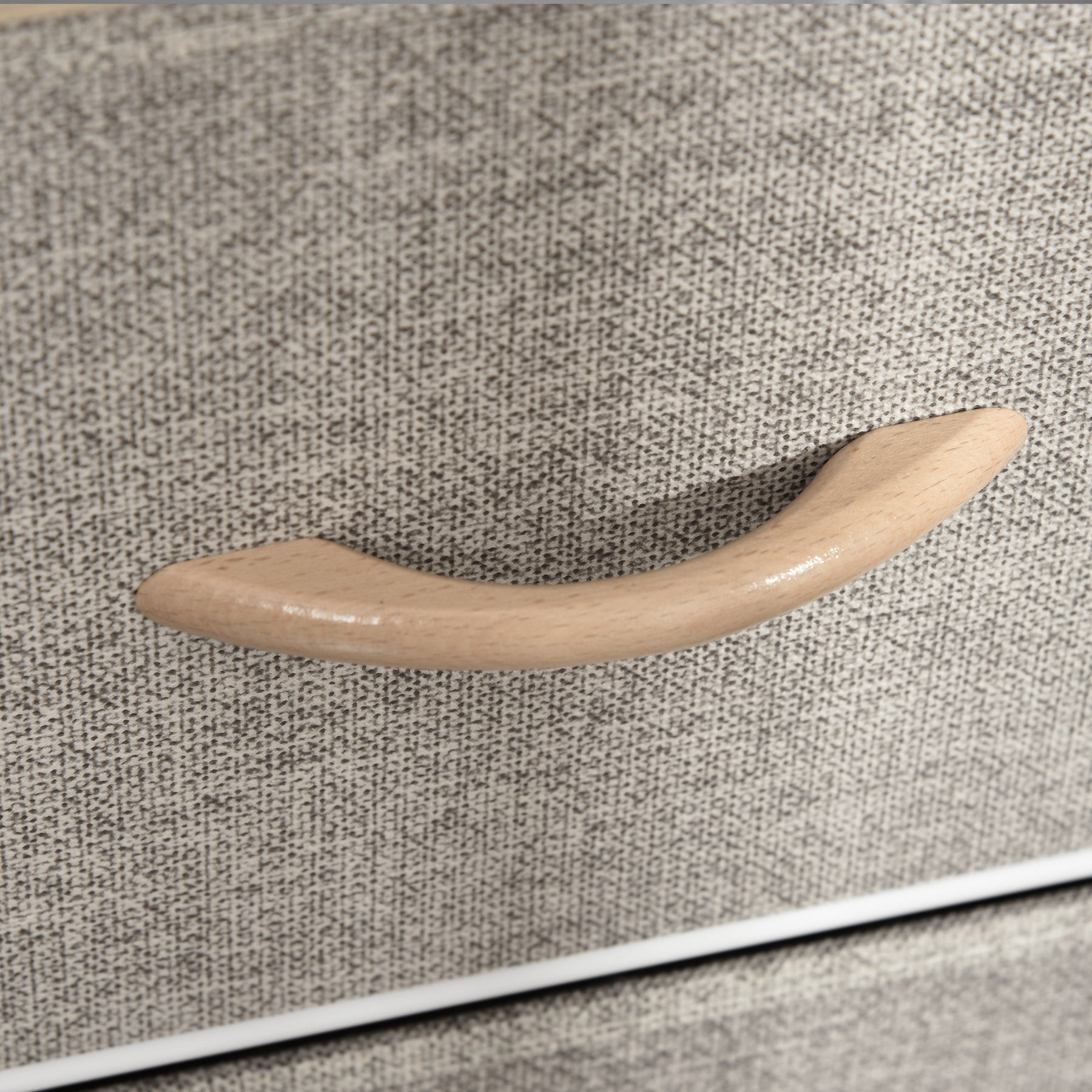 • Linen-feel drawers can be removed and folded. Comes with handle to open and close