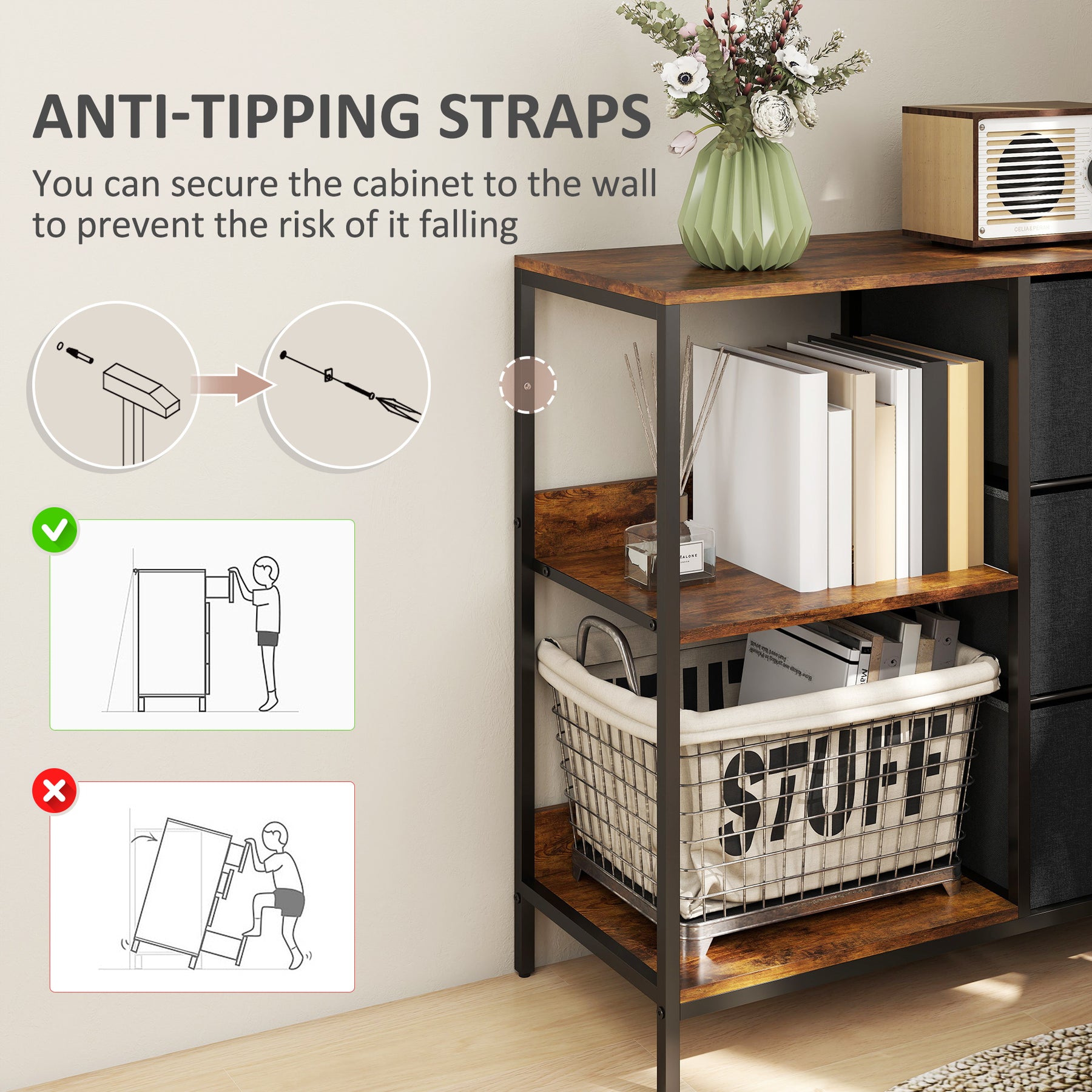 MCL Chest of Drawers Storage Dresser Cabinet Organizer with 3 Fabric Drawers and 2 Display Shelves for Living Room, Bedroom, Hallway, Black
