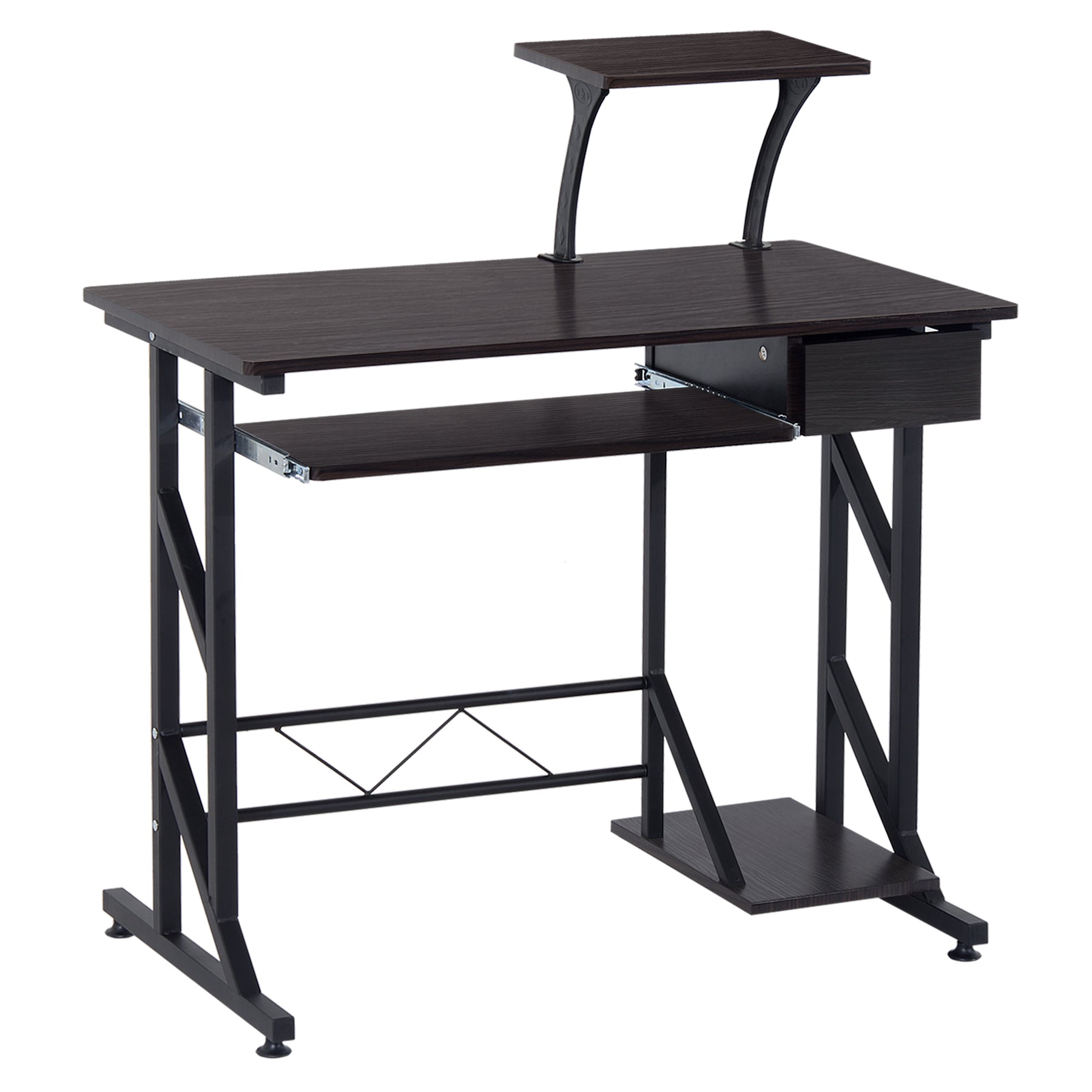 MCL Computer Desk with Display Stand, Sliding Keyboard Tray Drawer and Host Box Shelf Home Office Workstation Dark Brown