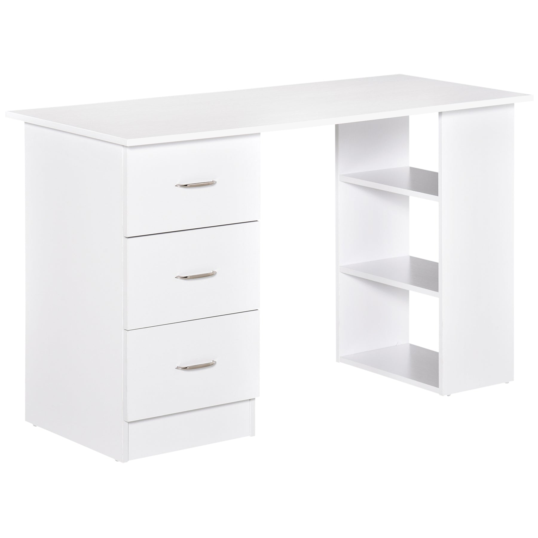 MCL Computer Desk, Writing Table, PC Workstation with 3 Storage Shelves and Drawers, Silver Handle, for Home Office, White