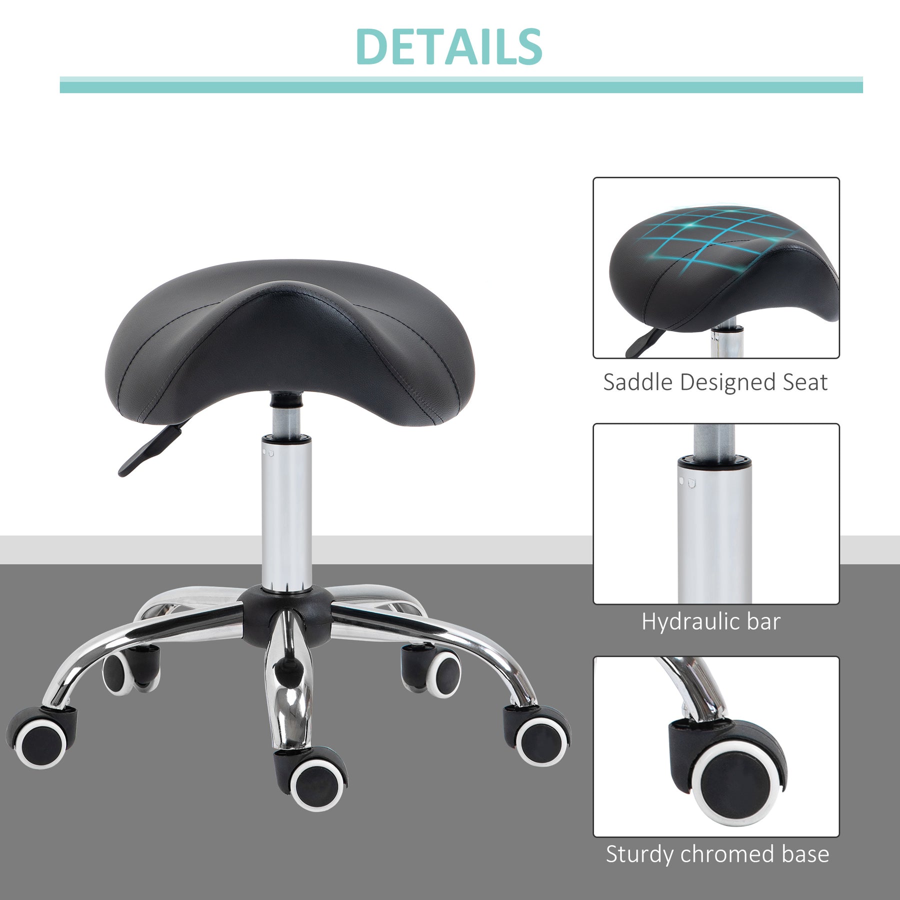 MCL Cosmetic Stool 360° Rotate Height Adjustable Salon Massage Spa Chair Hydraulic Rolling Faux Leather Saddle Stool Mobility, Black