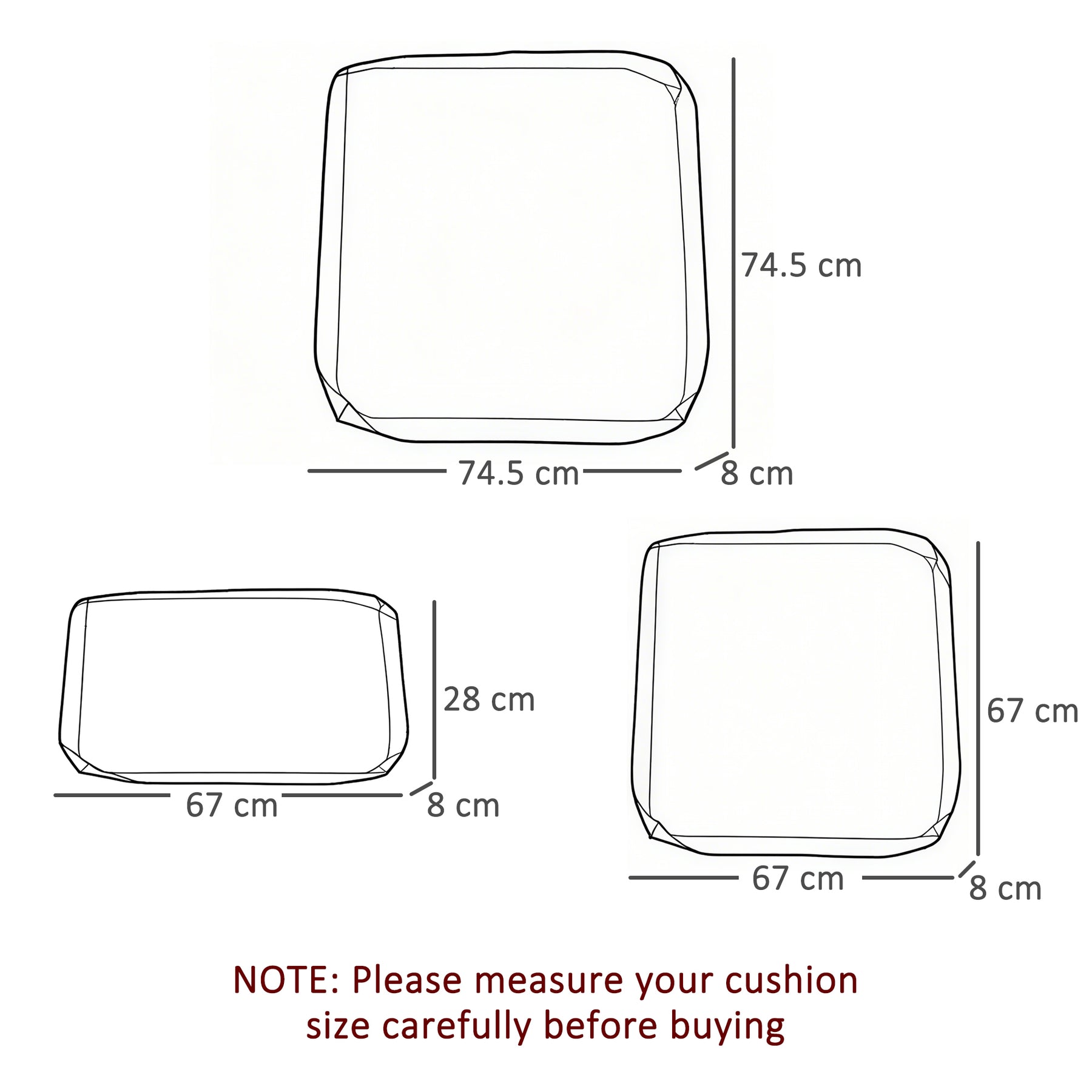 - 3 Small Seat Cushion: 67L x 67W x 8Tcm