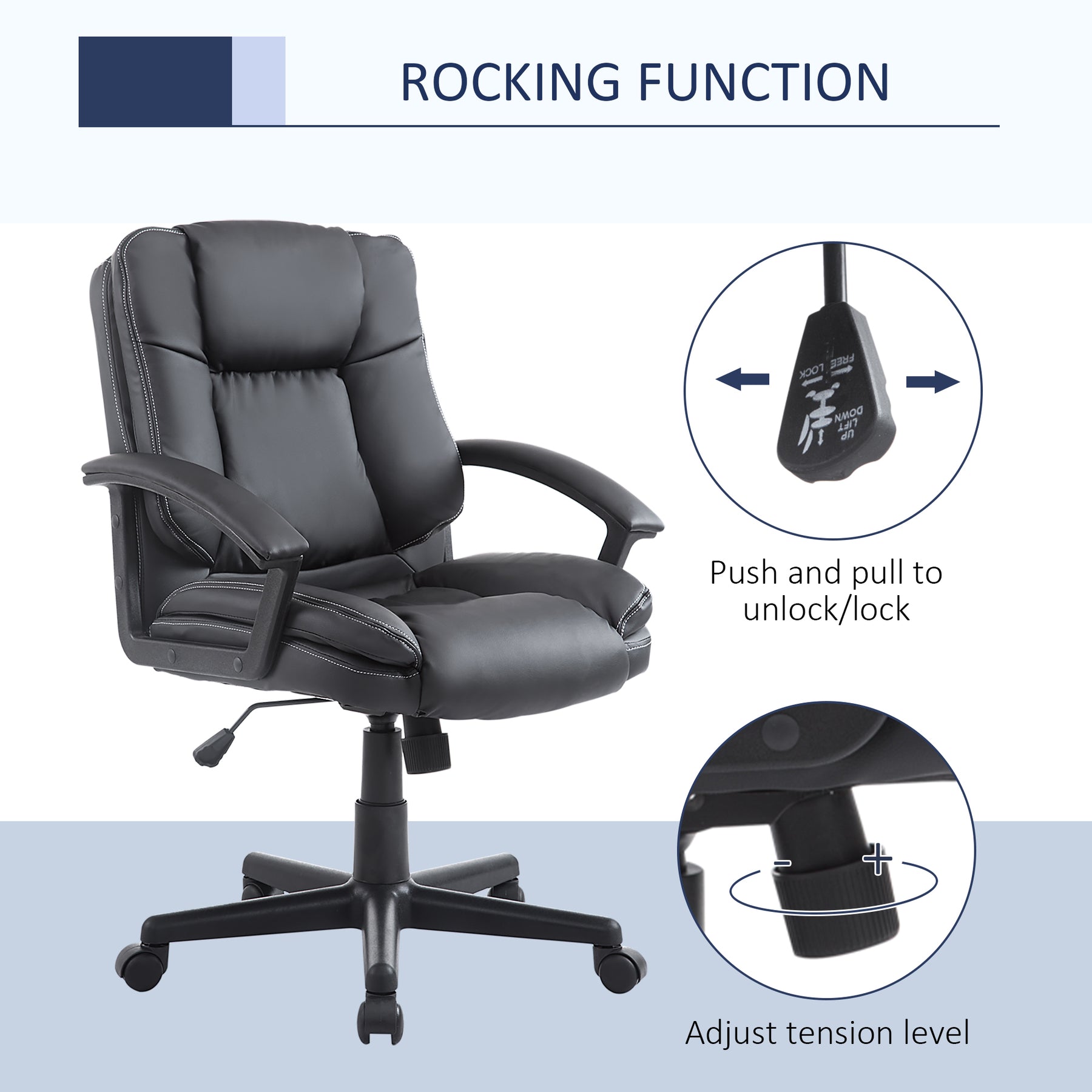 This MCL office chair is a great addition to any home office. A comfy chair: filled with foam padding, with a high back, fixed armrests and adjustable height for support. Five 360° wheels allow this chair to be moved around easily, whenever, complete with a swivel seat which moves in motion with your body.