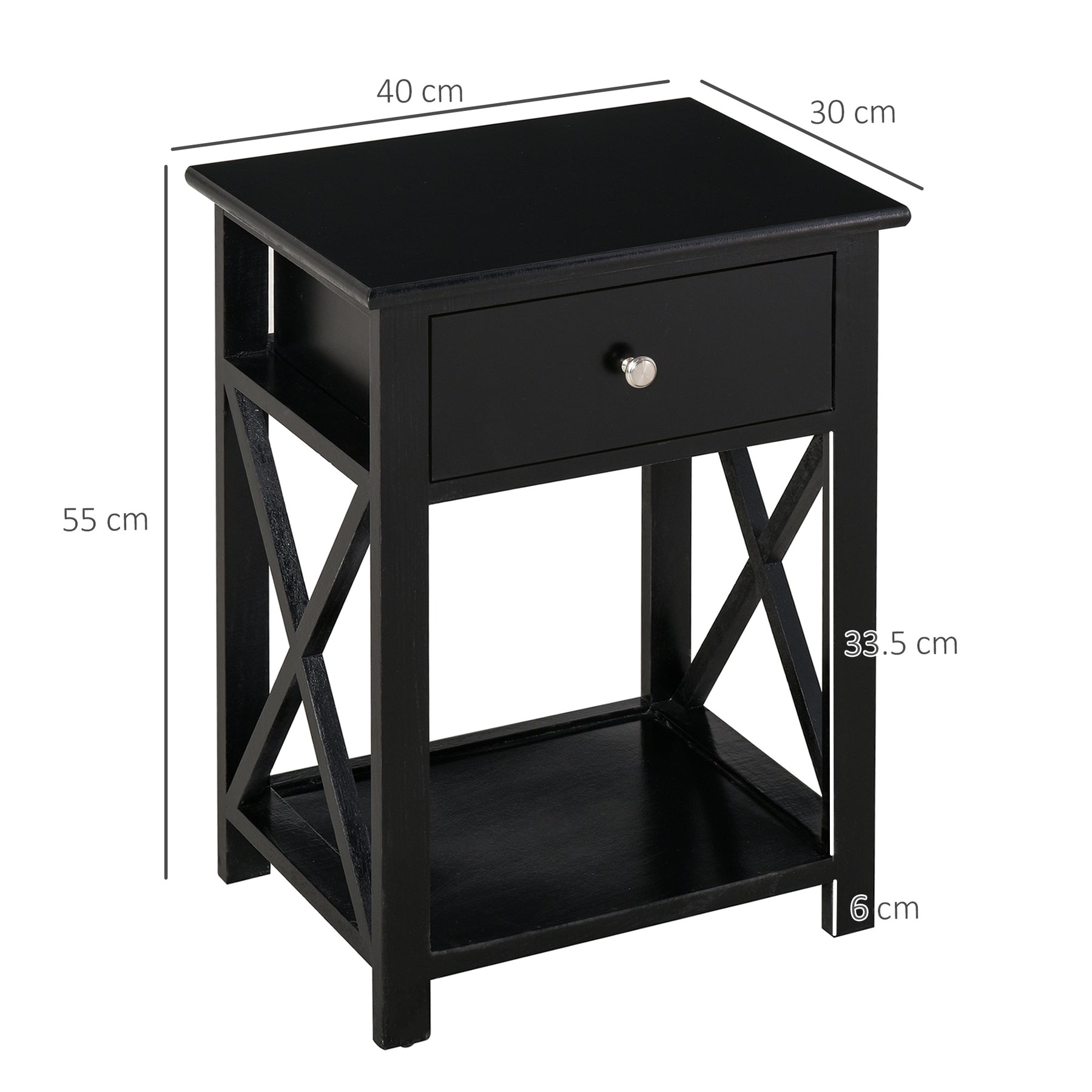 MCL End Table, Sofa Side Table with Drawer X Bar Bottom Storage Shelf, Nightstand Bedside Table for Bedroom or Living Room Black