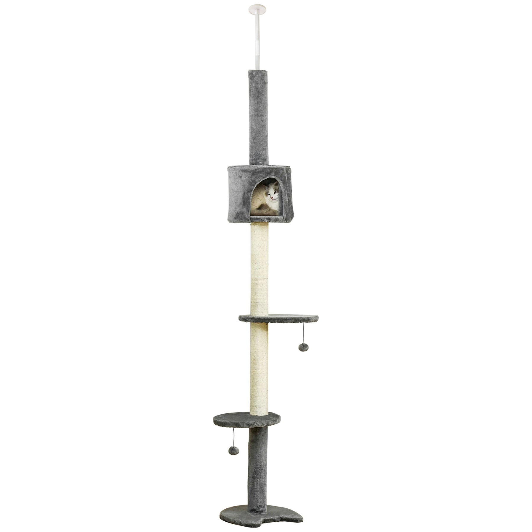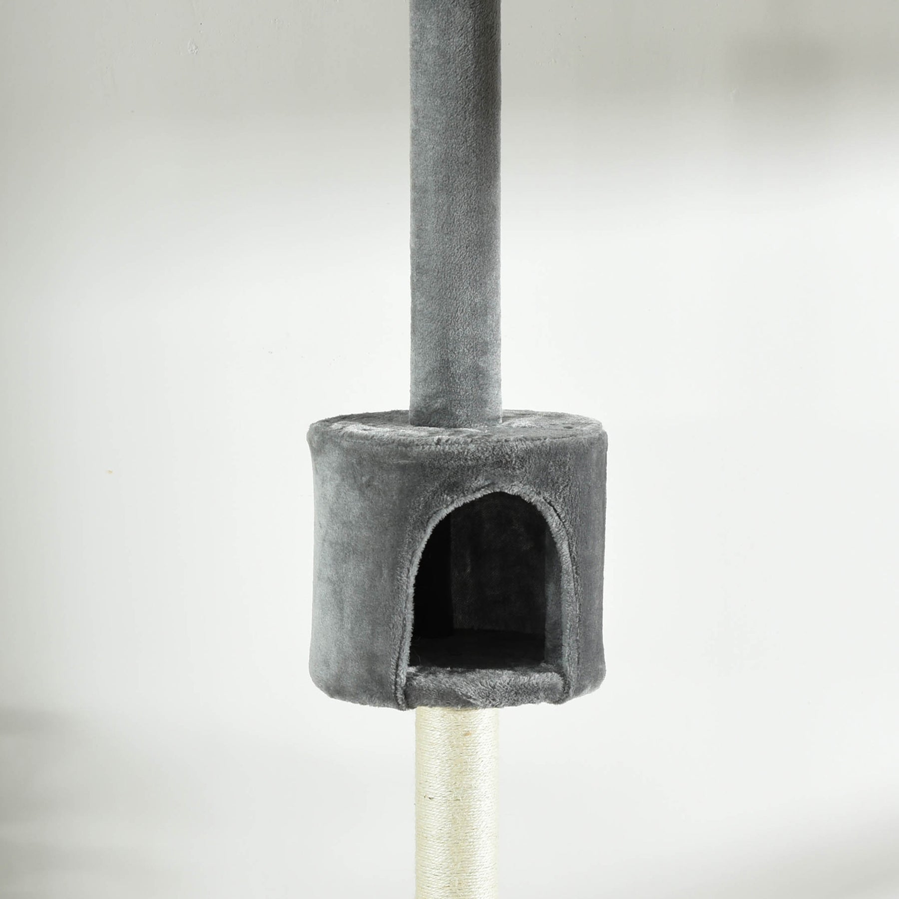 MCL Floor to Ceiling Cat Tree for Indoor Cats, Kitten Tower, Condo, Multi-Layer Activity Center, Indoor Pet Play House with Solid Scratching Post Hanging Balls, Light Grey