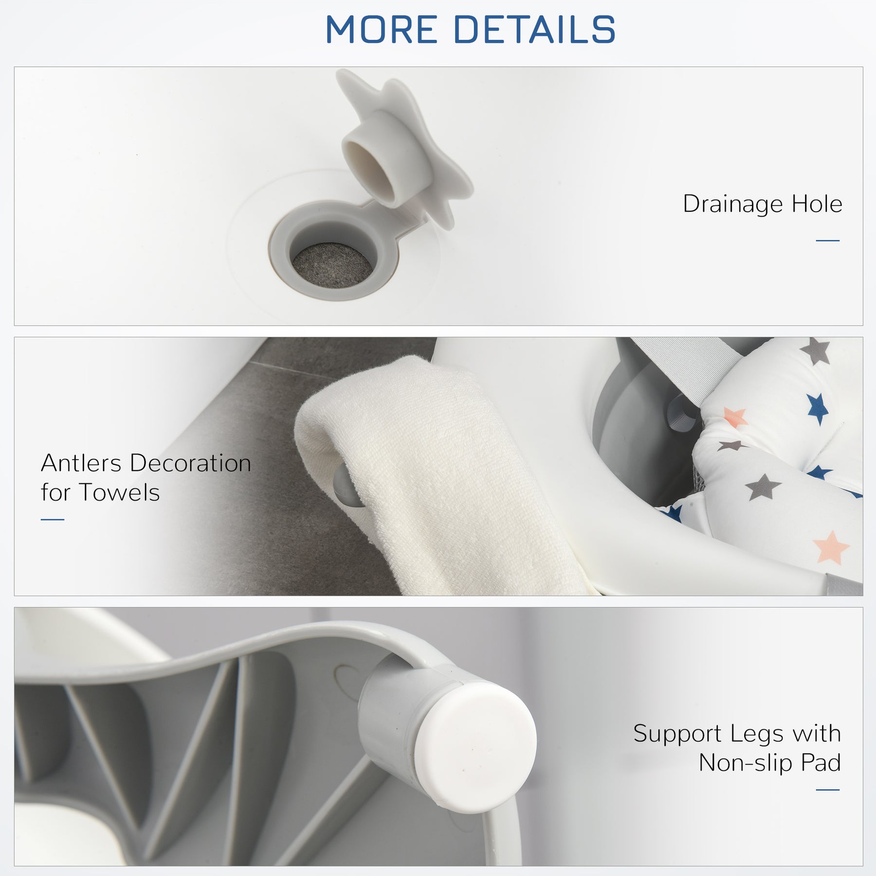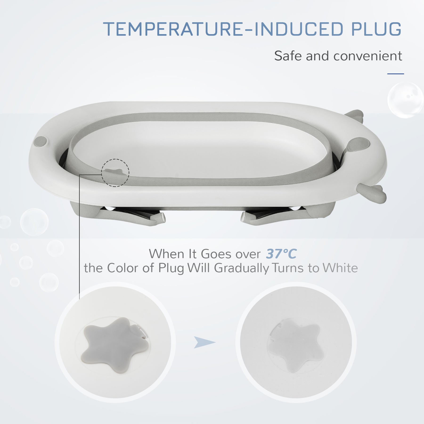 MCL Foldable Baby Bathtub Set, Collapsible Bath Tub with Thermostatic Water Plug, Non-Slip Support, Cushion Pad, Drain Plugs, for Newborn to 3 Years - Offwhite