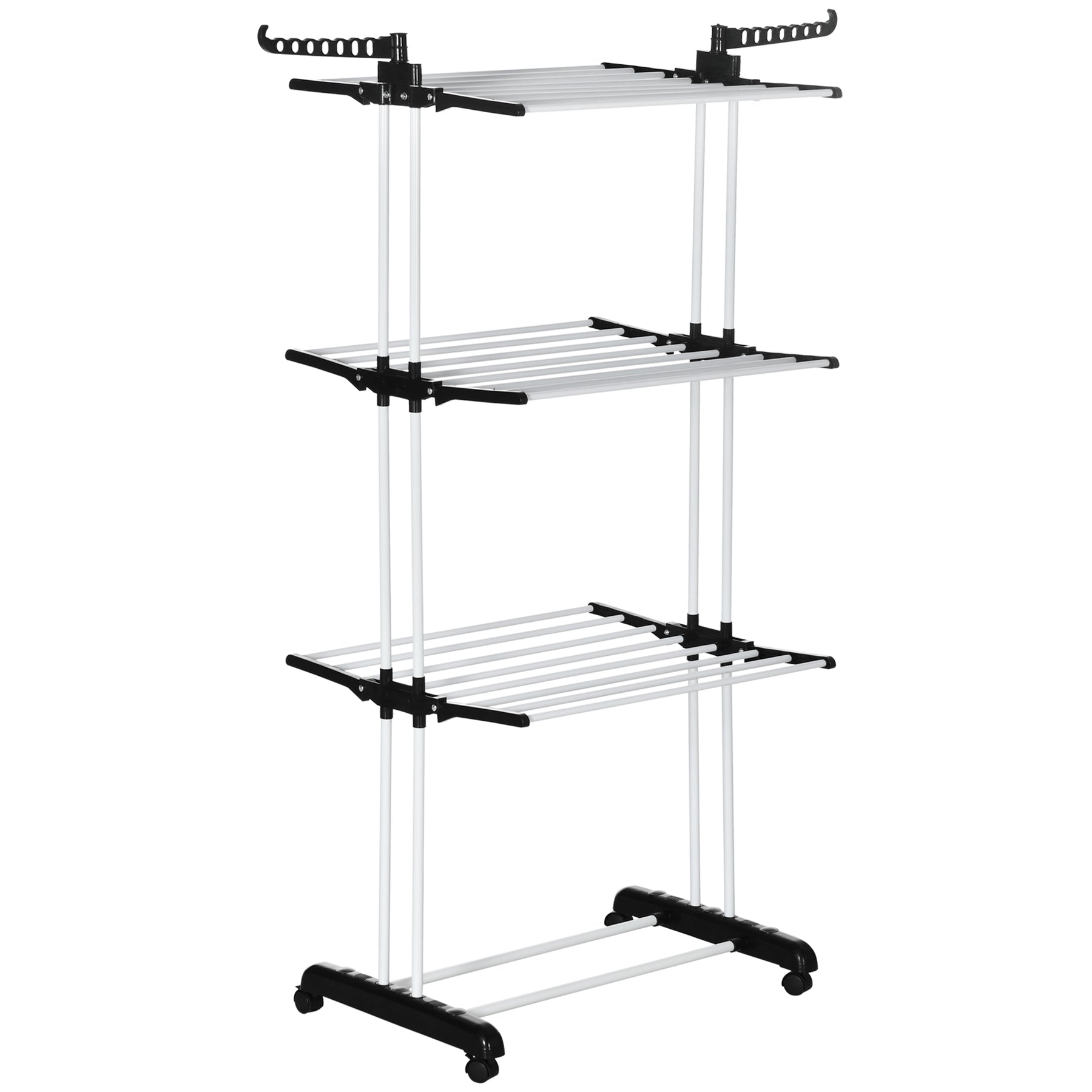 MCL Foldable Clothes Drying Rack, 4-Tier Steel Garment Laundry Rack with Castors for Indoor and Outdoor Use, Black