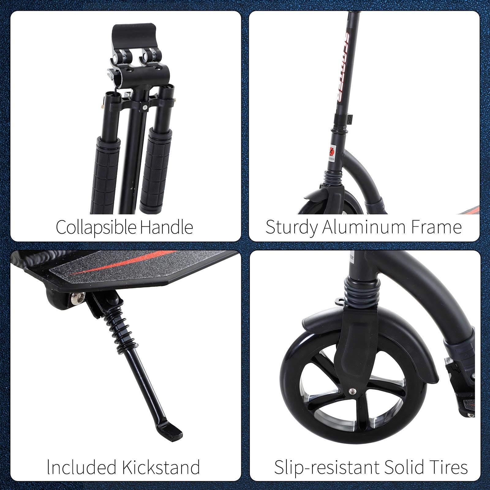 MCL Foldable Kick Scooter with Double Shock Absorption and Big Wheels, Height Adjustable Aluminium Frame Big Wheel Scooter for 14+ Teens Adult - Black