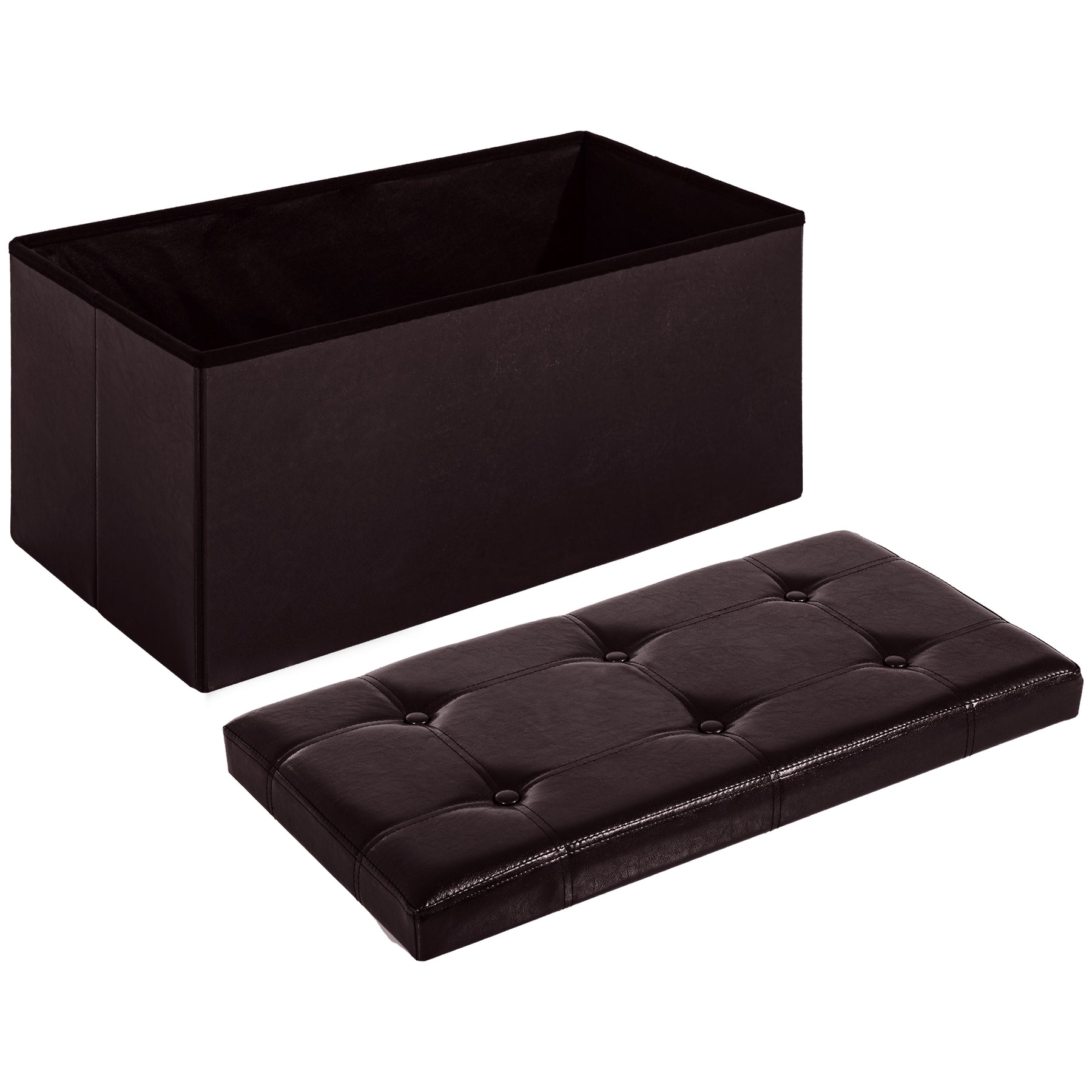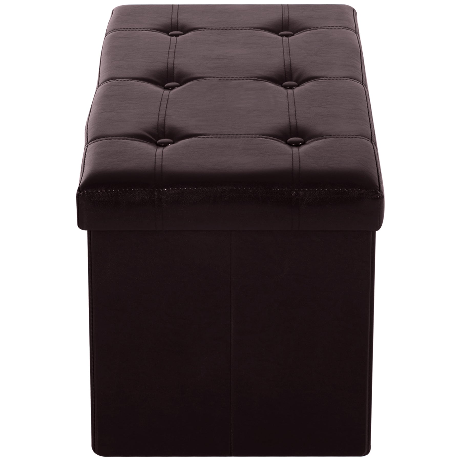 This MCL collapsible ottoman made from faux leather is a great addition to your storage needs, the top has tufted design which is elegant and stylish. With a wooden frame construction to give it strength and stability. It can be used as a footstool and storage 2 in 1 and would compliment any room in your home. It has a foldable design so when not in use it can be stored away.