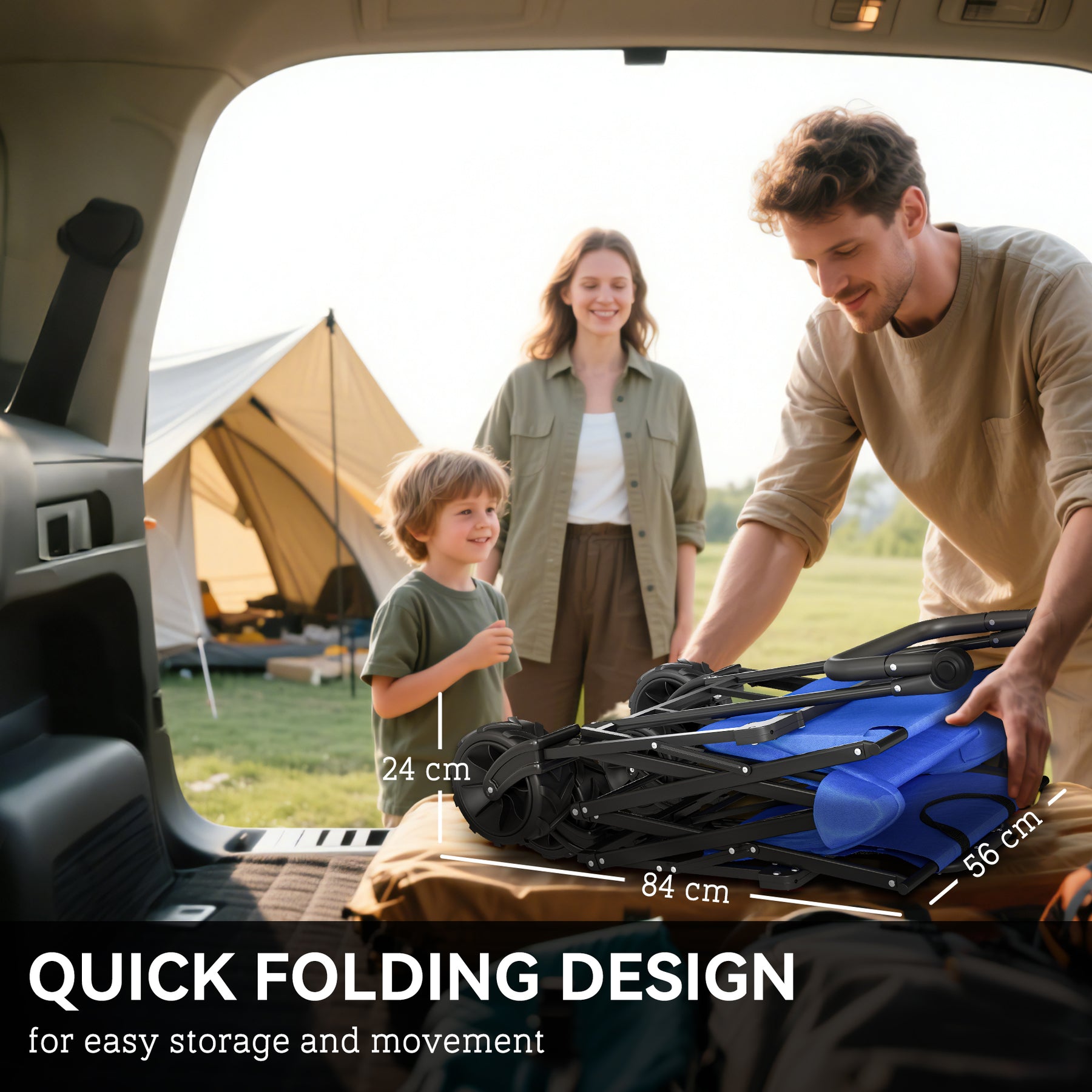 MCL Folding Trolley Cart Storage Wagon Beach Trailer 4 Wheels with Handle Overhead Canopy Cart Push Pull for Camping, Blue