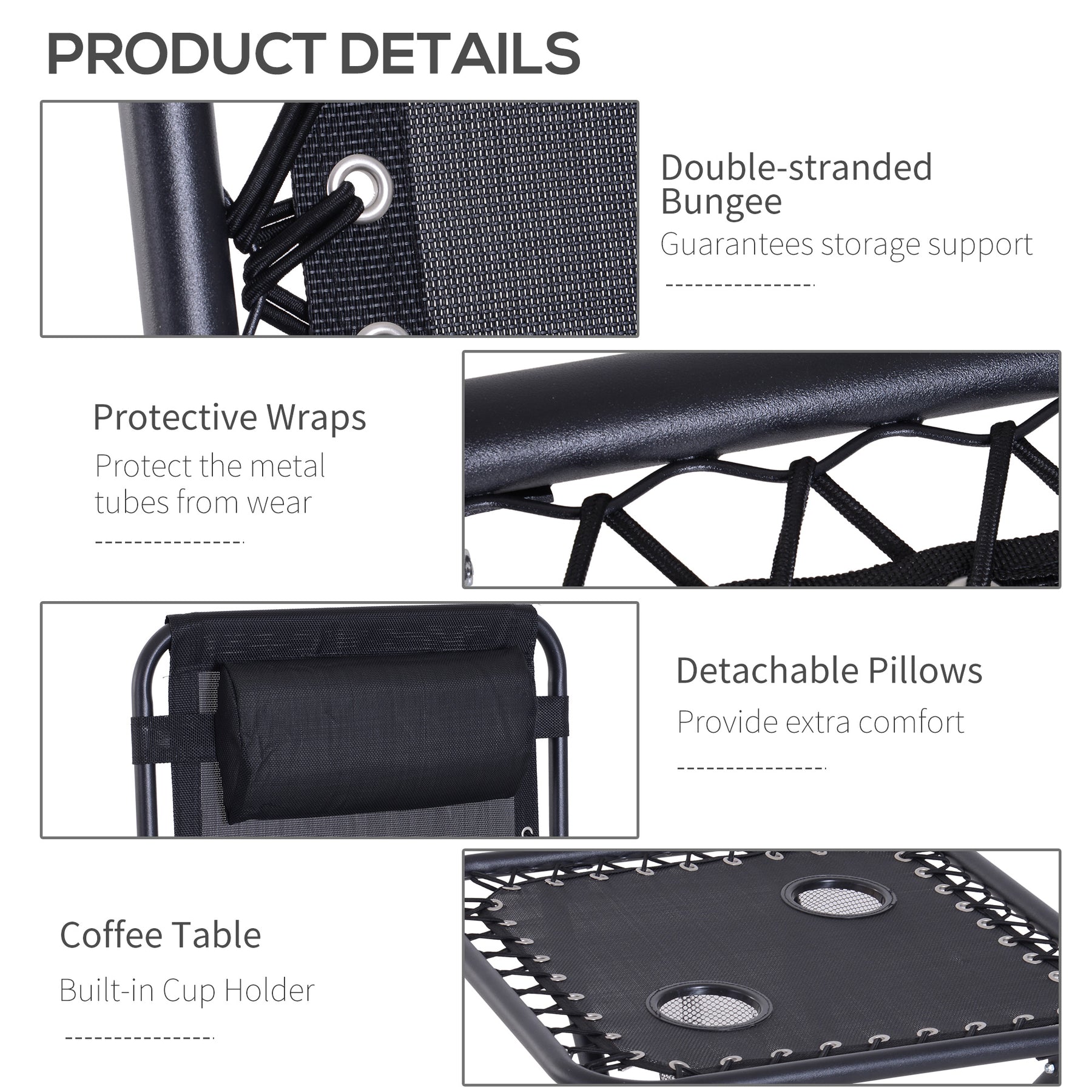MCL Folding Zero Gravity Chairs, 3 Pieces Adjustable Sun Lounger and Table Set with Cup Holder and Headrest, Patio Bistro Set with Reclining Garden Chairs for Outdoor, Black
