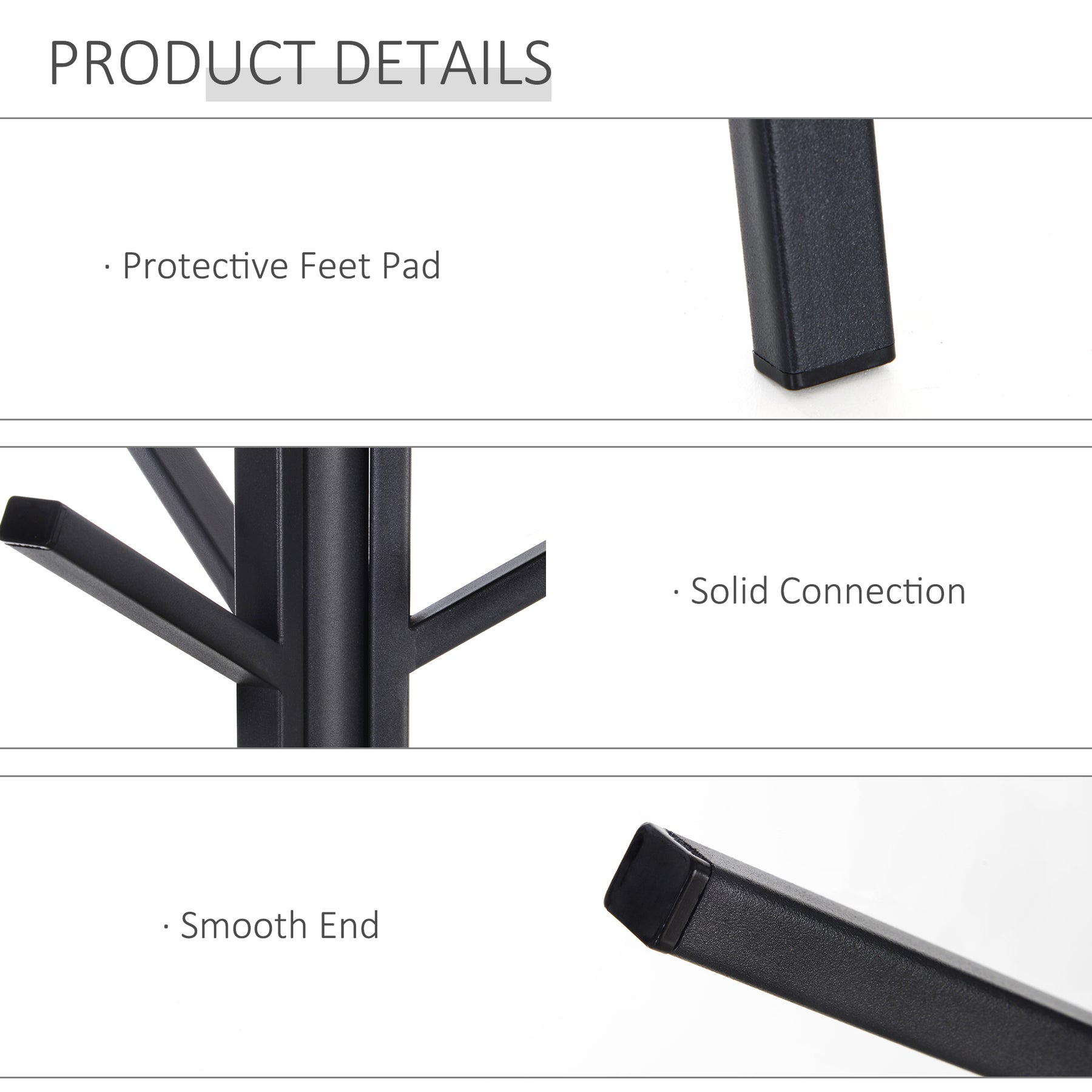 • Stoving varnish finish on surface makes the coat rack water-proof, rust-proof and easy to clean