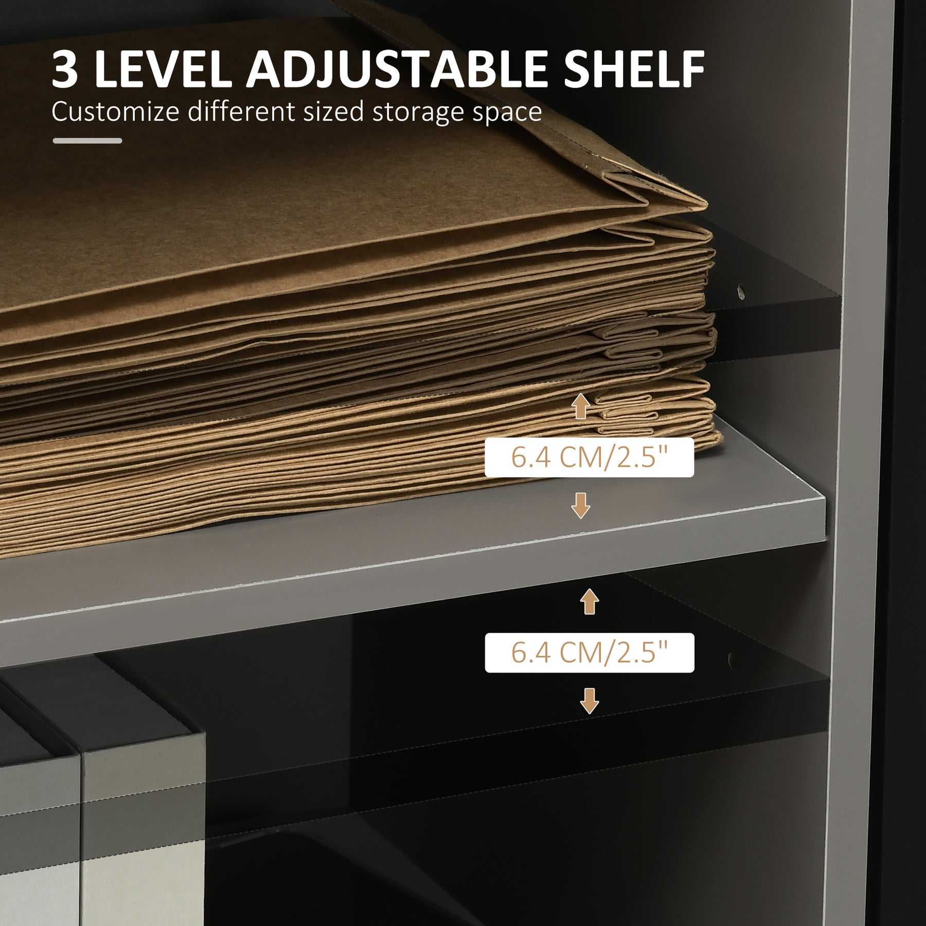 Give your office style and storage all at once with this cabinet from MCL. It features two open compartments and three drawers, giving you plenty of space to keep files, folders and stationary organized. The shelf on the right can be adjusted to suit your needs. Four castor wheels ensure easy movement, with two lockable to keep stationary. It's made from particle board, ensuring it is tough and durable for everyday use, in a black colour for a sleek addition which sits well-placed anywhere.