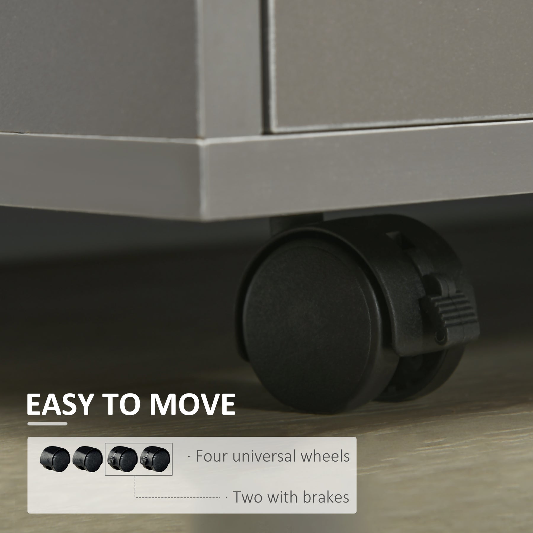 MCL Freestanding Printer Stand Unit Office Desk Side Mobile Storage w/ Wheels 3 Drawers, 2 Open Shelves Modern Style 80L x 40W x 65H cm - Grey