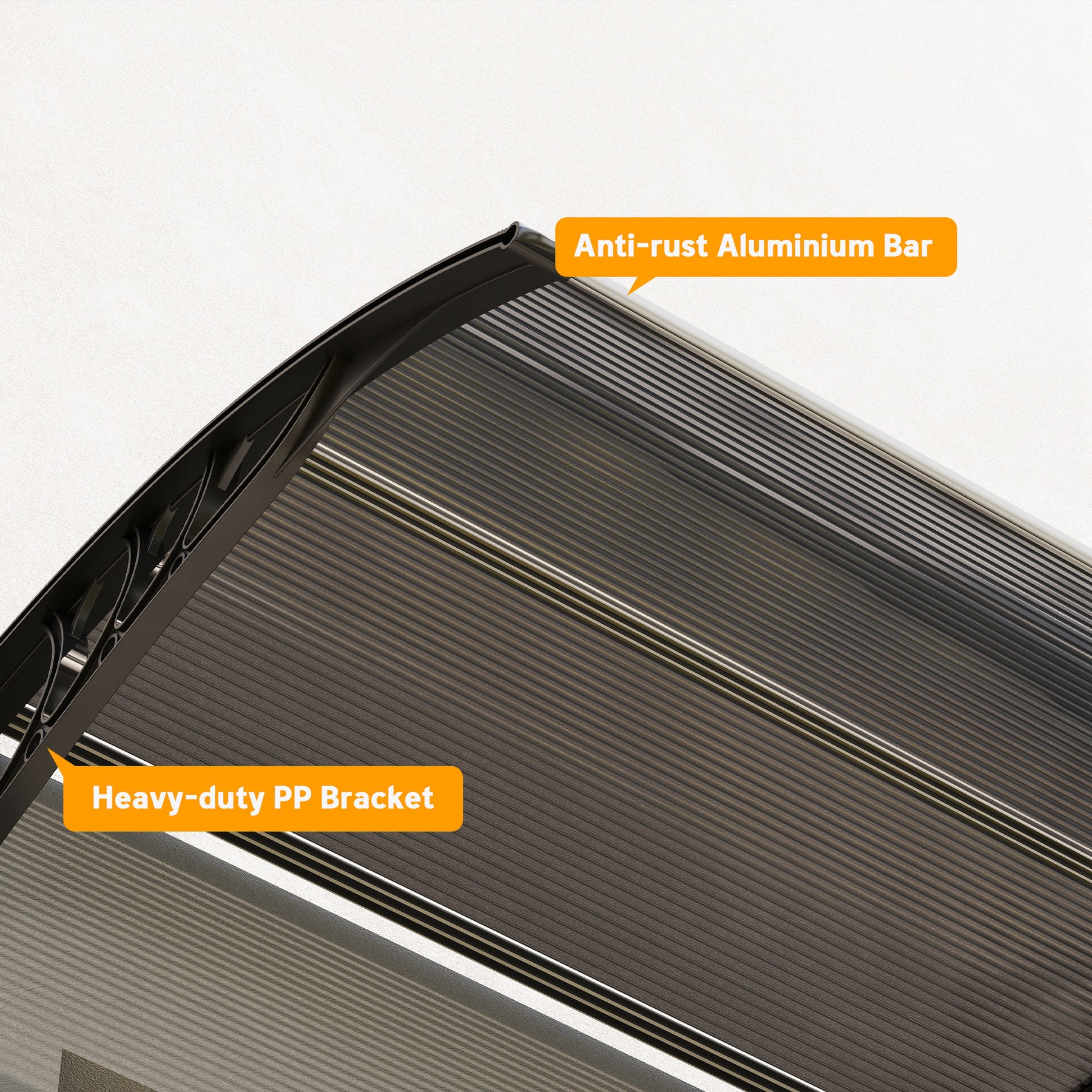 MCL Front Door Canopy Outdoor Awning Aluminium Rigid Plastic Polycarbonate Rain Shelter UV Water Rain Resistant 196 x 75cm Black