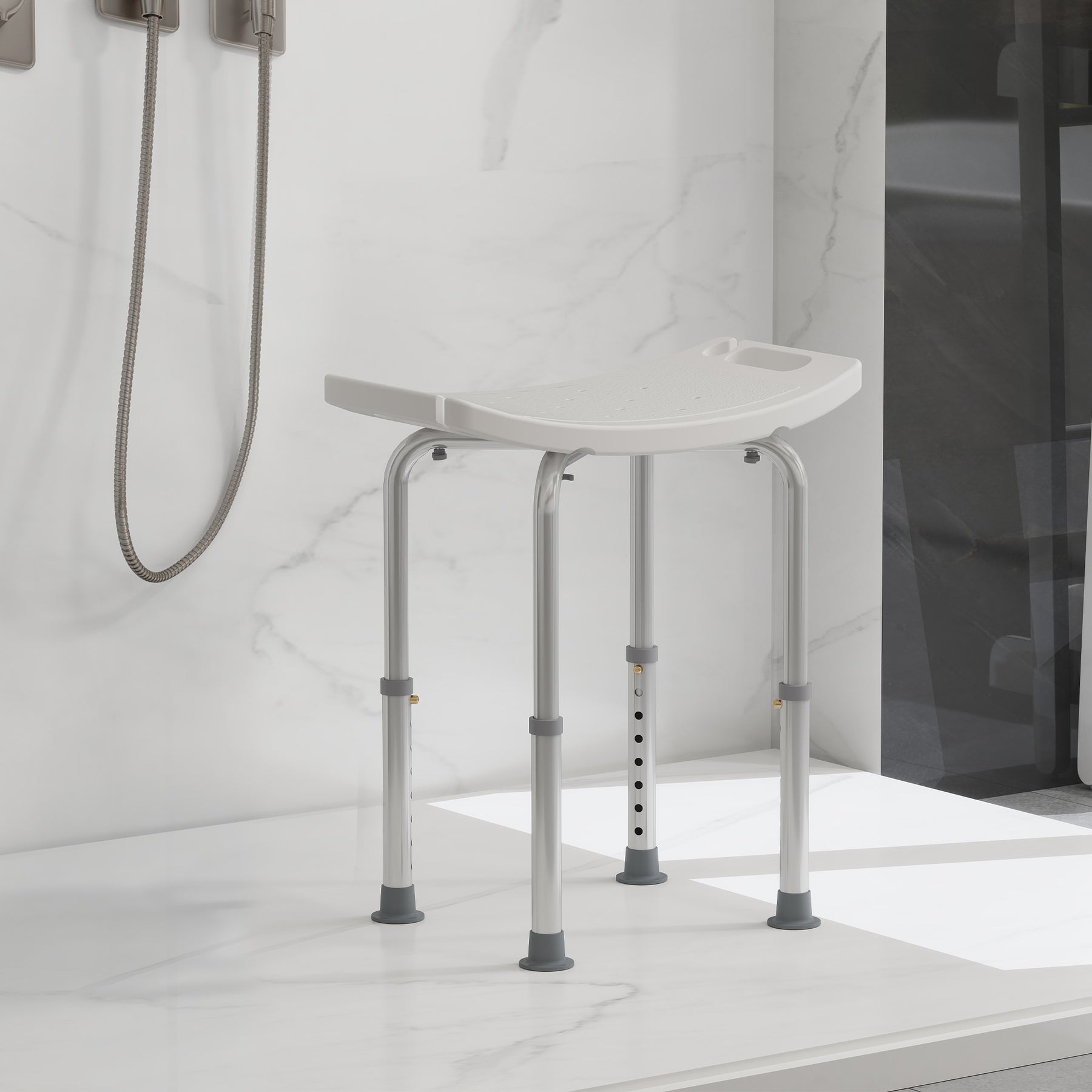 MCL Height Adjustable Bath Stool, Aluminium Shower Stool with Non-Slip Pads for Elderly, Disabled, Seniors, Pregnant, White