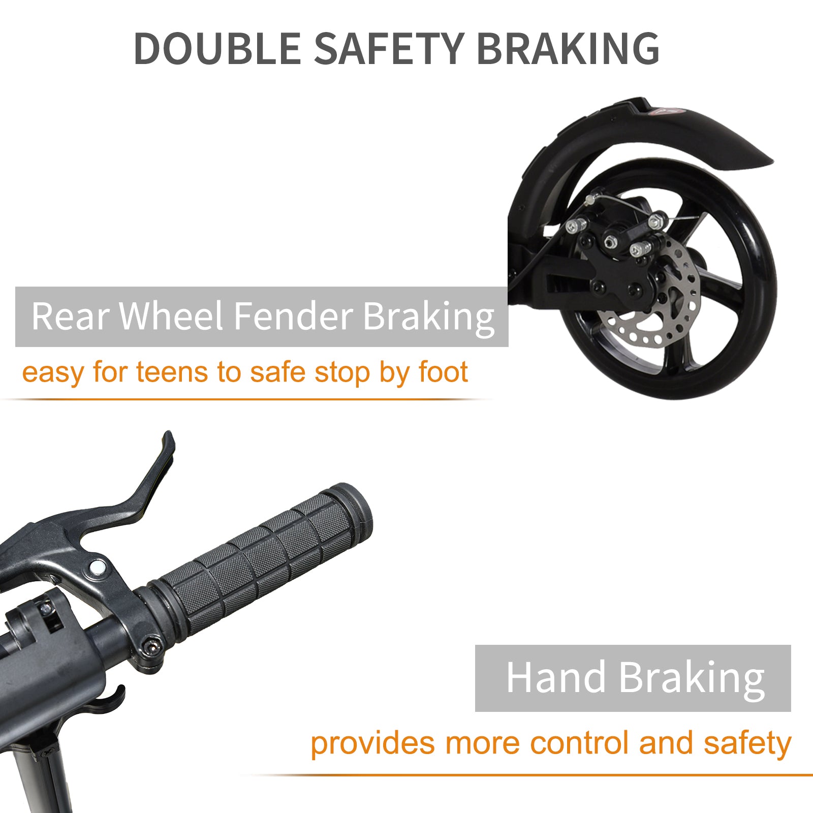 MCL Kick Scooter, Folding 2 Wheel Scooter for 14+ Teens Adults, with Dual Brake System, Dual Suspension, 230mm Big Wheels, 3 Adjustable Handlebar, up to 100KG, Black