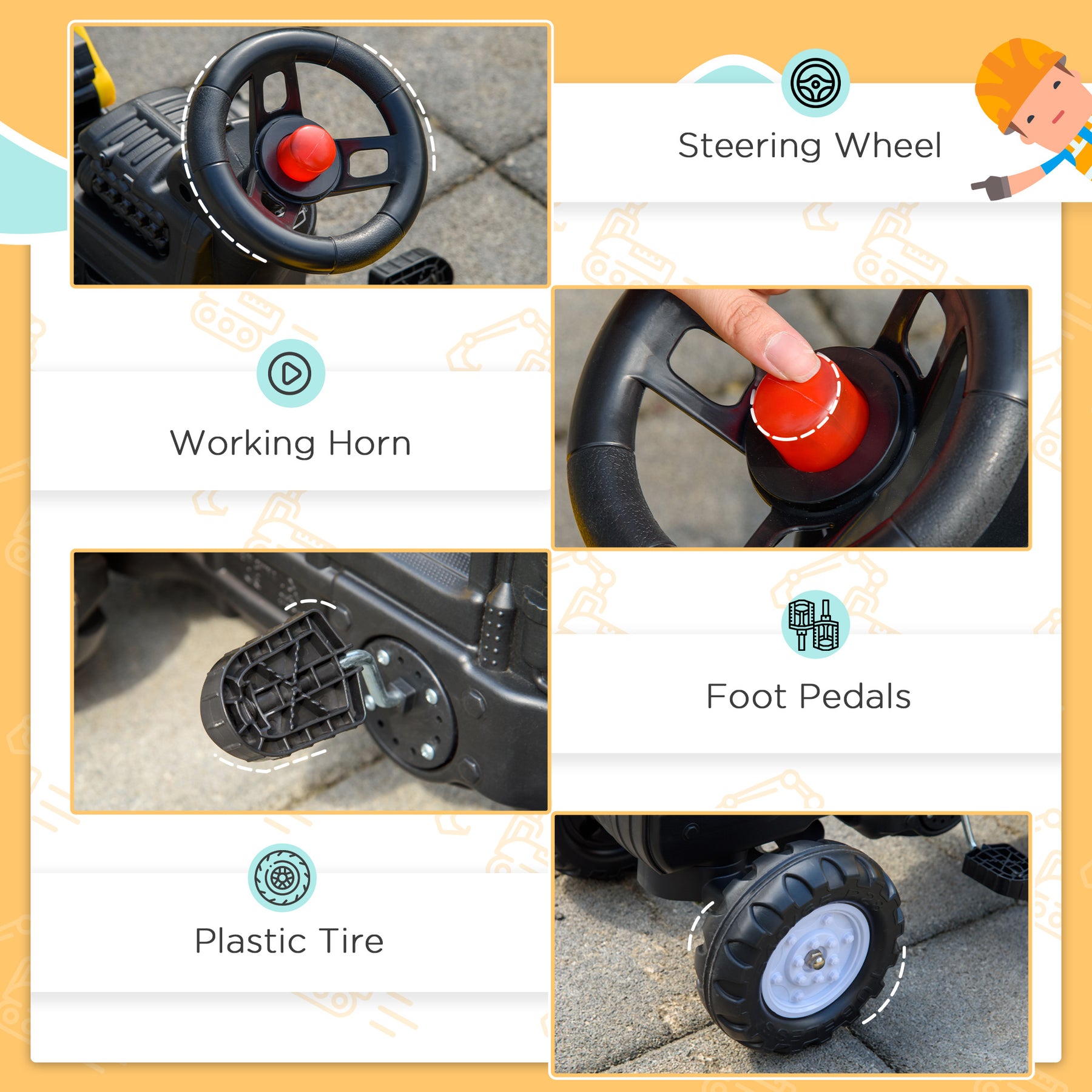 Your child's imagination will run wild, thanks to this MCL kids ride-on. Designed as a construction truck, it includes a long arm with a shovel on the end, which can be raised and lowered by rotating the handle – perfect for digging and picking things up. The working horn adds to the fun, whilst the detachable trailer allows them to keep toys and other things nearby – there's also an extra spade and shovel. Whether it's the beach, park or at home, this ride-on will keep your sweetie happy.