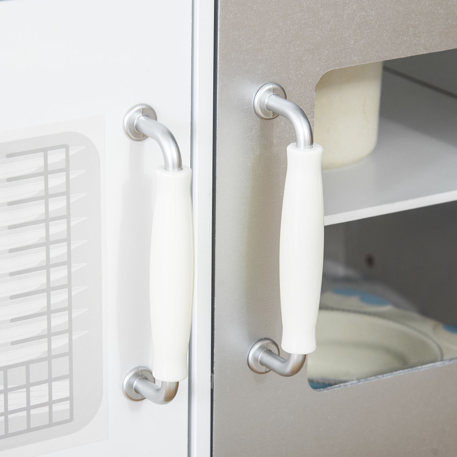 Playtime just got a lot better, thanks to this kids kitchen playset from MCL. Their imagination can run wild as they use the sink, cooking bench, stainless pots and more. Turn the faucet and temperature dials to get their make-believe cooking underway. When playtime's over, store the accessories in the cabinets, keeping your room tidy. Don't worry about getting the set messy – made from MDF, it's easy to clean. The smooth rounded surfaces create a safe environment for your child to play.