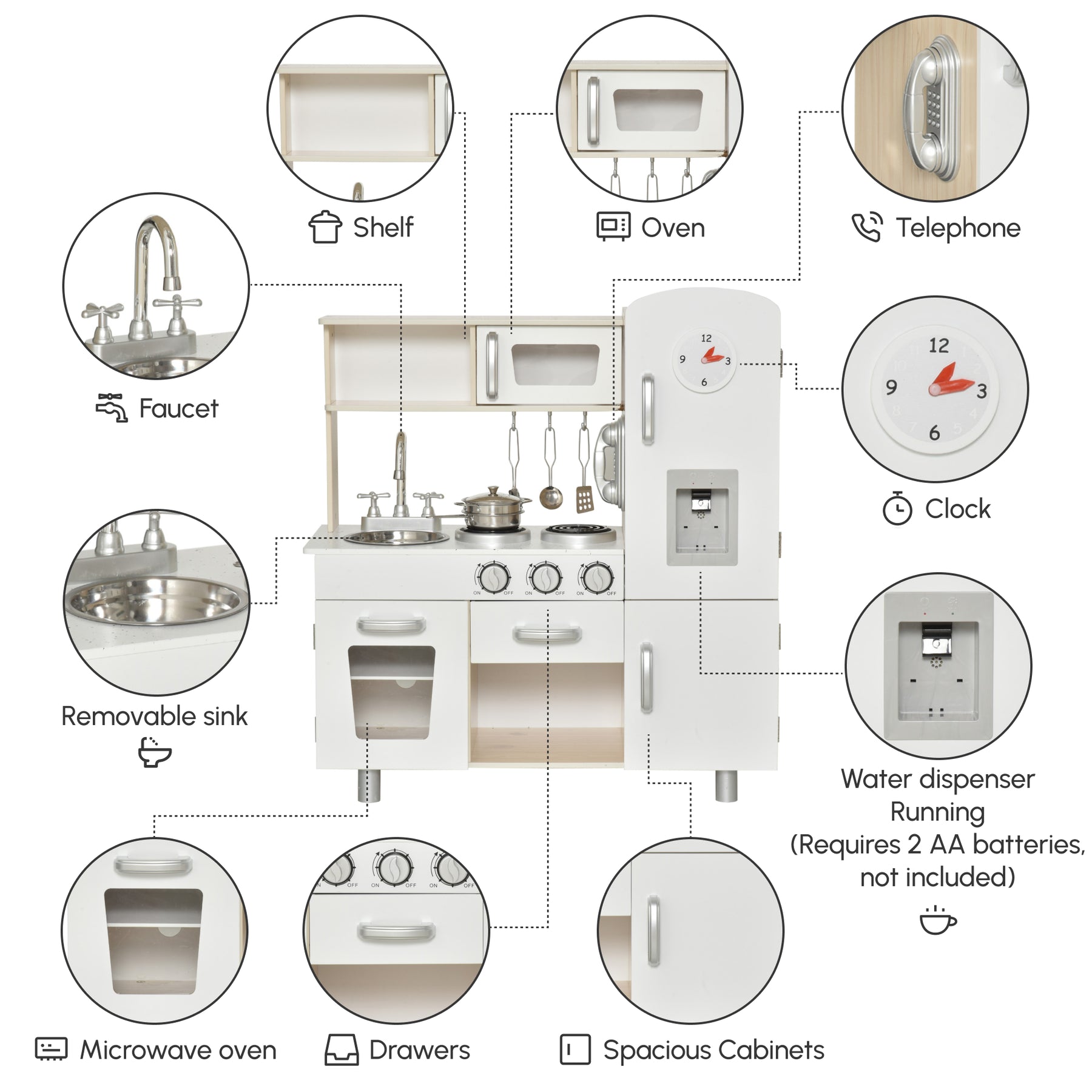 • Interactive sink, induction cooker, telephone and water dispenser for extra fun and realism