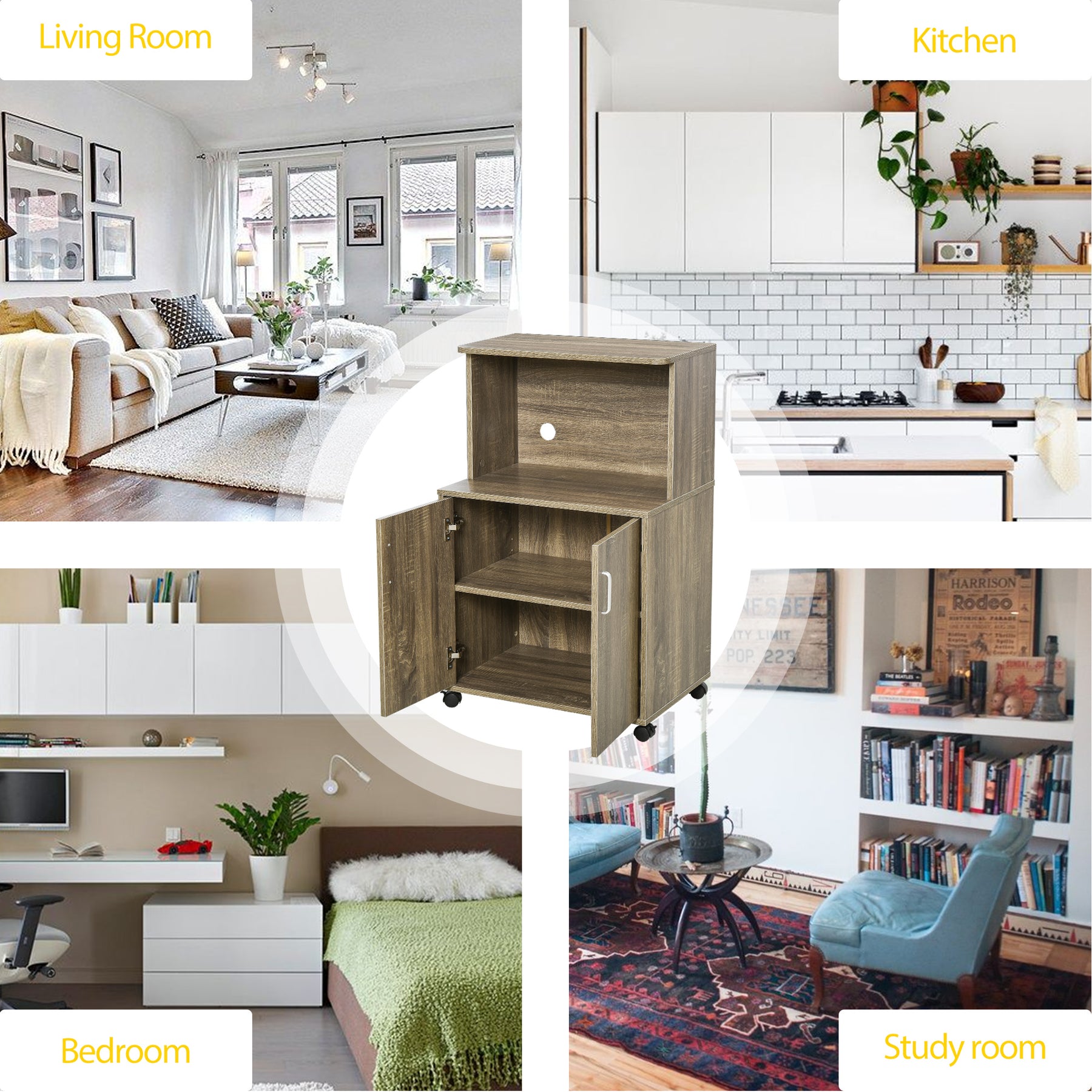 MCL Kitchen Storage Unit, Modern Microwave Stand Trolley Cart, Sideboard with Cabinet, Locking Wheels, Shelf for Living Room, Dining Room, Oak Tone