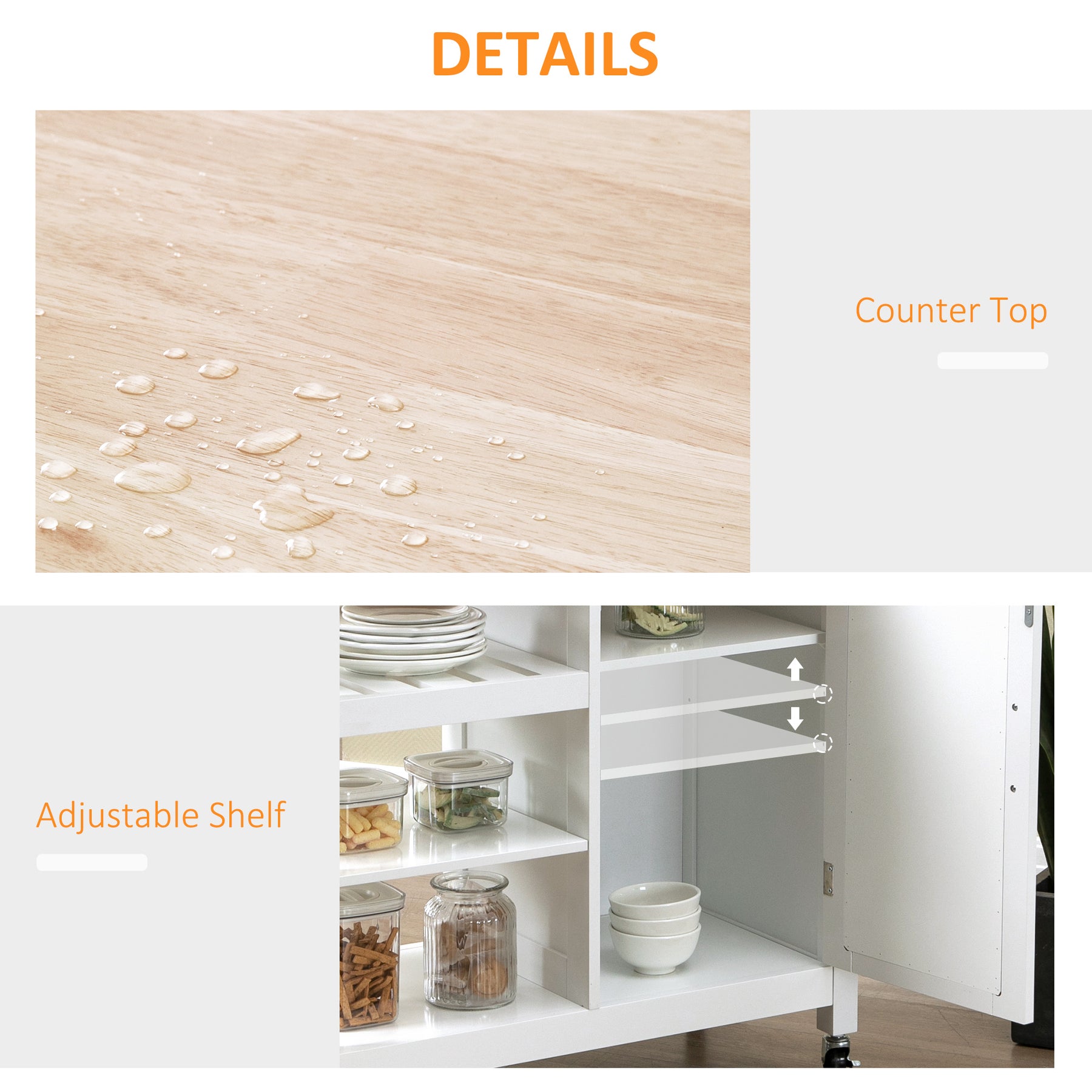 MCL Kitchen Trolley, Kitchen Island on Wheels with Embossed Door Panel, Utility Kitchen Cart with 3 Storage Shelves, White