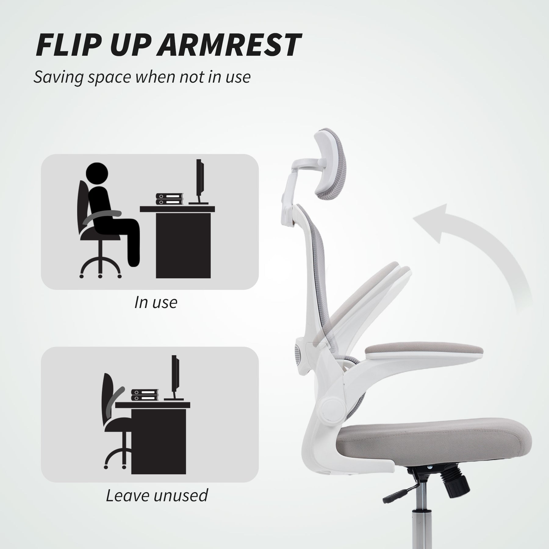 All day support as you work, with this MCL office chair. A padded seat for comfort, with mesh fabric all over: this helps keep the chair and you as cool as possible. Set the seat between 43–51 cm to work at the level you want, with an adjustable headrest for head and neck support. It has lumbar support for your lower back. When done, all you have to do flip the armrests up so it fits underneath your desk.