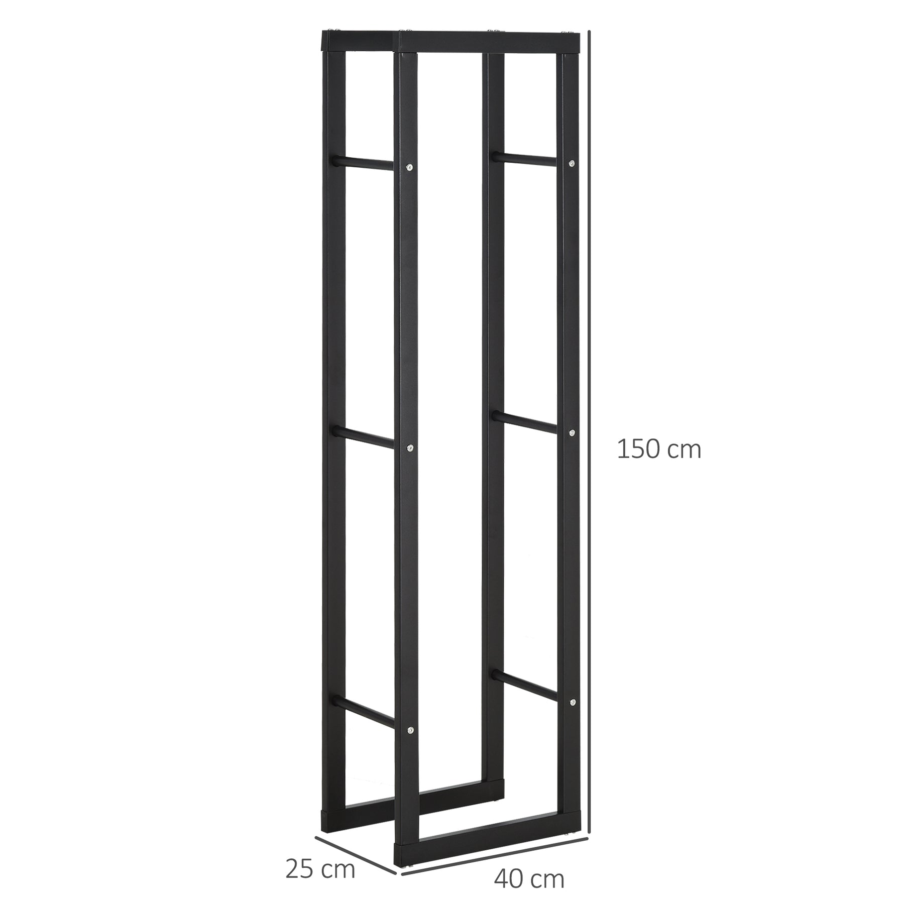MCL Metal Firewood Log Holder Tall Firewood Rack Indoor Outdoor Fireplace Wood Storage Shelf with Side Rails, Rust-Resistant, Black, 40W x 25D x 150H cm