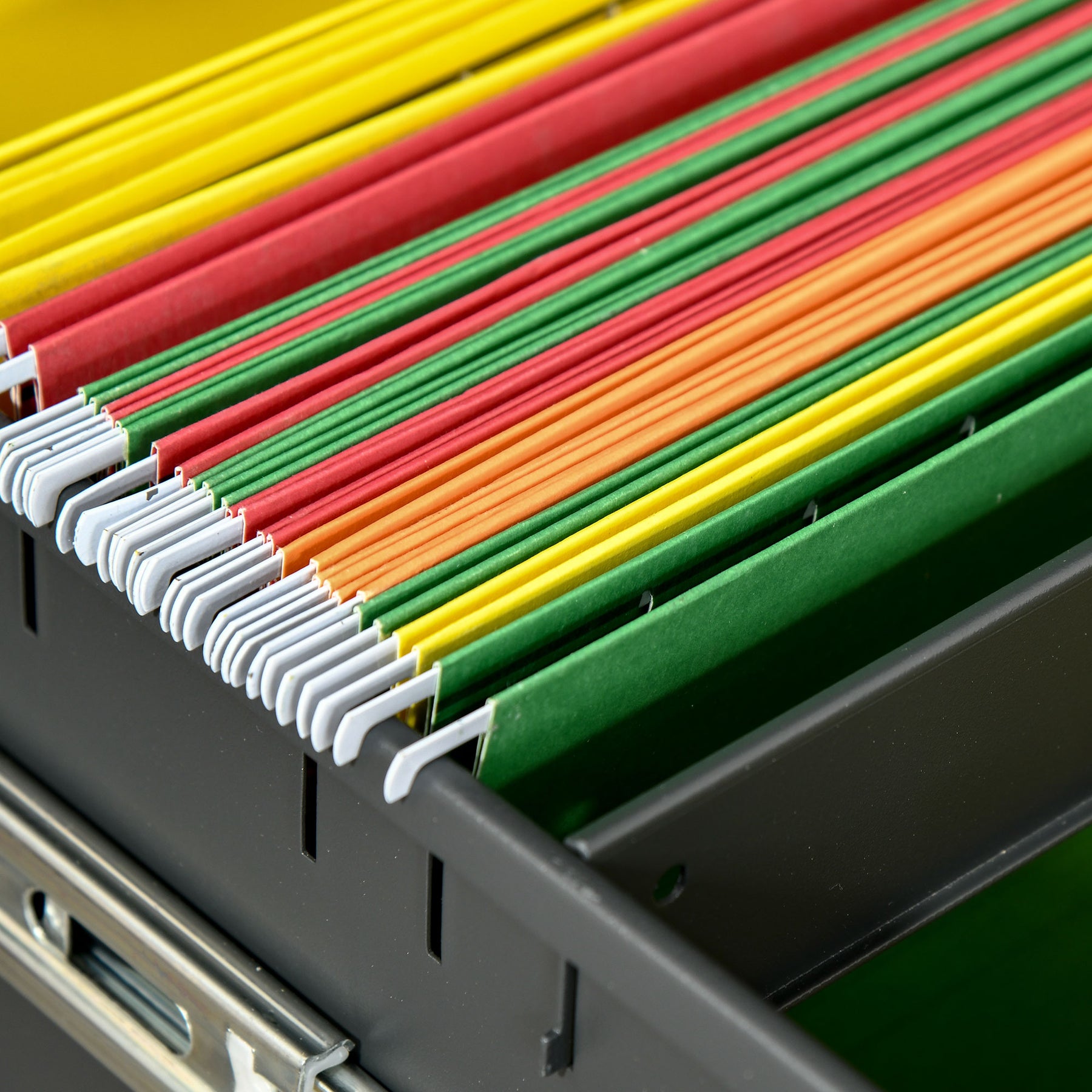Discover the metal filing cabinet from MCL, a space-saving marvel with a narrow design that fits snugly under your desk and near your feet. This lockable office drawer unit features two small drawers with a removable pencil tray for stationery and a large drawer with adjustable rail for A4, legal and letter files, doubling as a handy printer stand. Effortlessly glide it around on 360° swivel wheels, keeping everything secure and within reach. Great for any bustling home office.