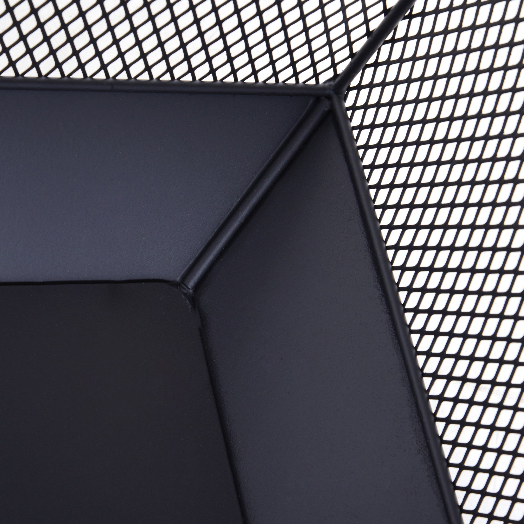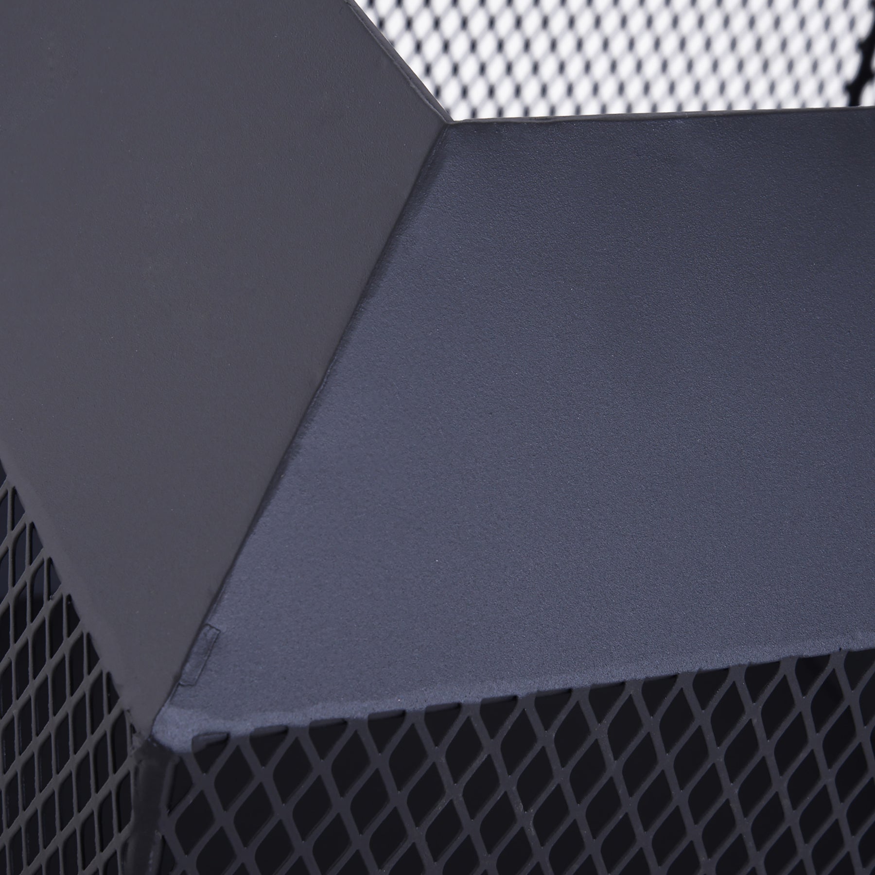 MCL Metal Square Fire Pit Outdoor Mesh Firepit Brazier w/ Lid, Log Grate, Poker for Backyard, Camping, Bonfire, Wood Burning Stove, 44 x 44 x 40cm, Black