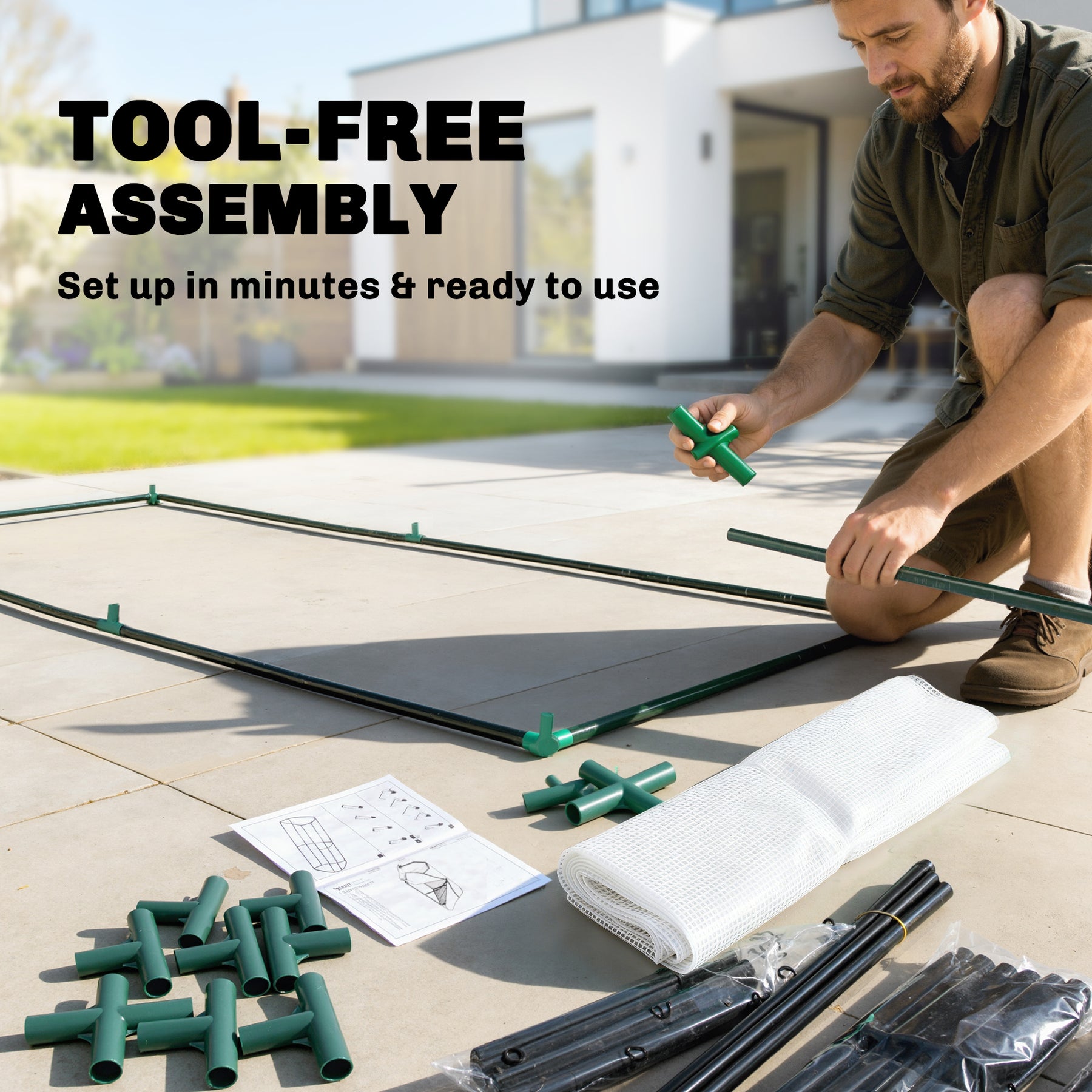 - Material: Steel Tube Frame, PE Mesh Cover
