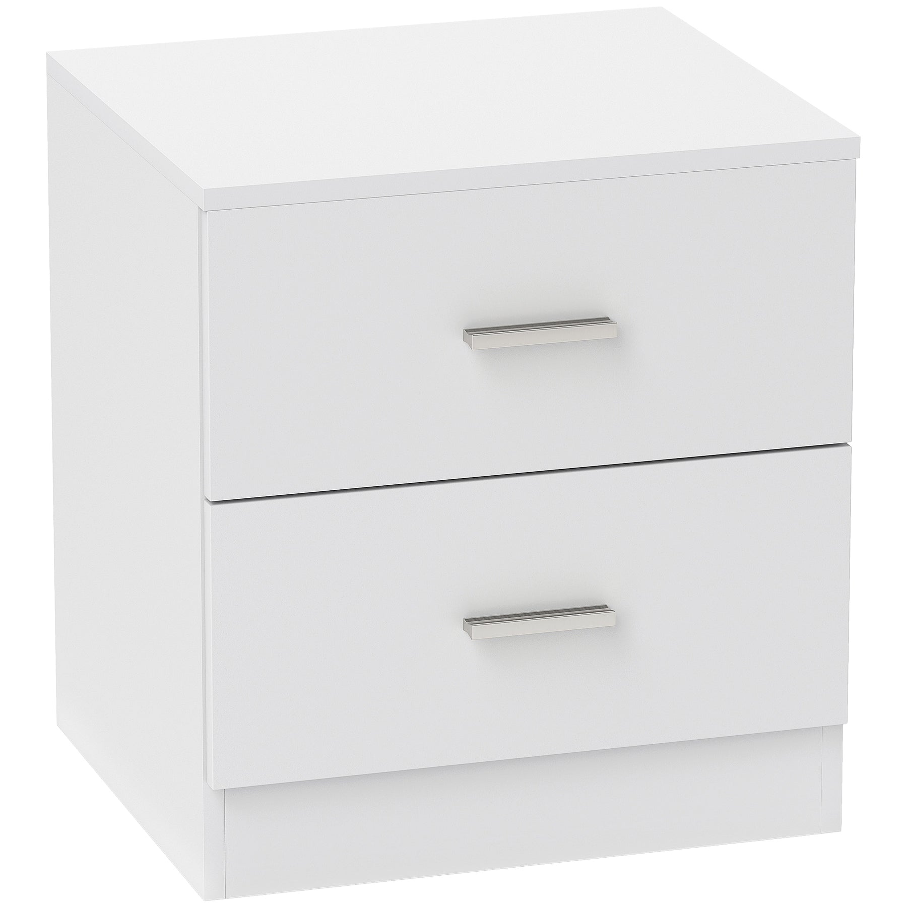 Modern boxy organisation for your bedside - this nightstand from MCL. Comes with two drawers for generous amount of storage. Made from particle board, structure is reliable, in a clean white finish for versatility. Smooth finish is easy to clean. It's finished with sleek metal handles to open and close both drawers easily.