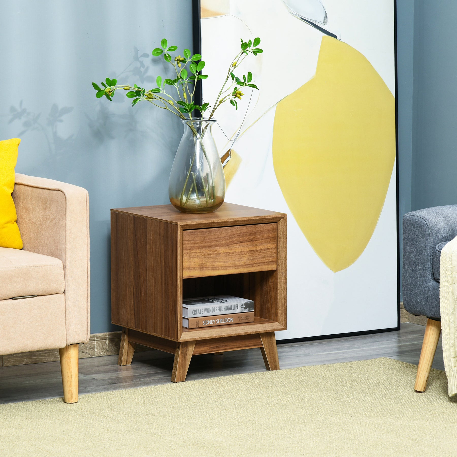 A classic approach to bedtime storage starts with this night stand from MCL. Comes with both a top drawer and bottom shelf for keeping your essentials close. Made from MDF, the bedside table with drawer is durable and sturdy, finished in a beautiful wood effect. Fitted with four angled legs for balance. An effortless way to bring style and space into your beautiful space.