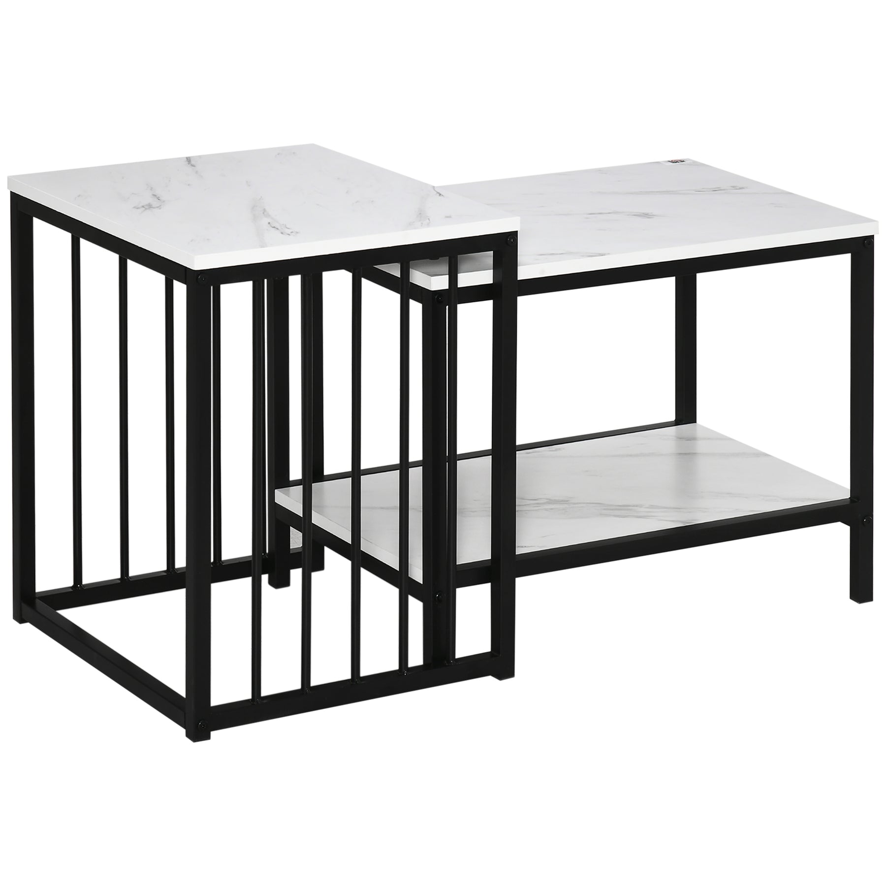 A marble coffee table set from MCL modernises your home. Two tables – a tall table, which can be used as a nightstand or end table, whilst the small table is wide and makes a great coffee table; tuck the small table under the other to save space. Its white and black appearance is super stylish, which has an easy-to-clean MDF surface to maintain that good look. There's a bottom shelf to keep things organised and tidy, making it a piece that brings elegance and usefulness to your living space.