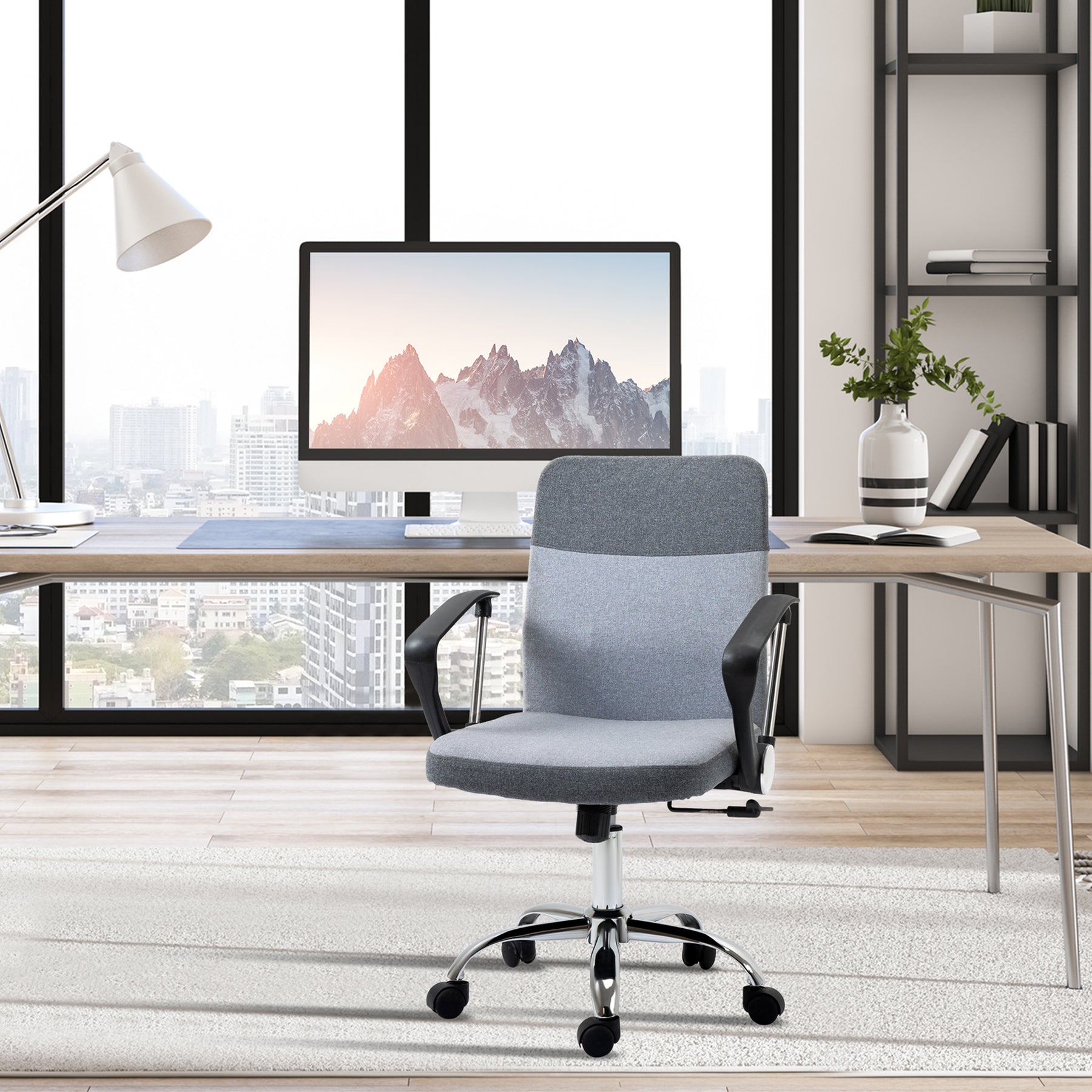 MCL Office Chair Linen Fabric Swivel Computer Desk Chair Home Study Adjustable Chair with Wheels, Grey