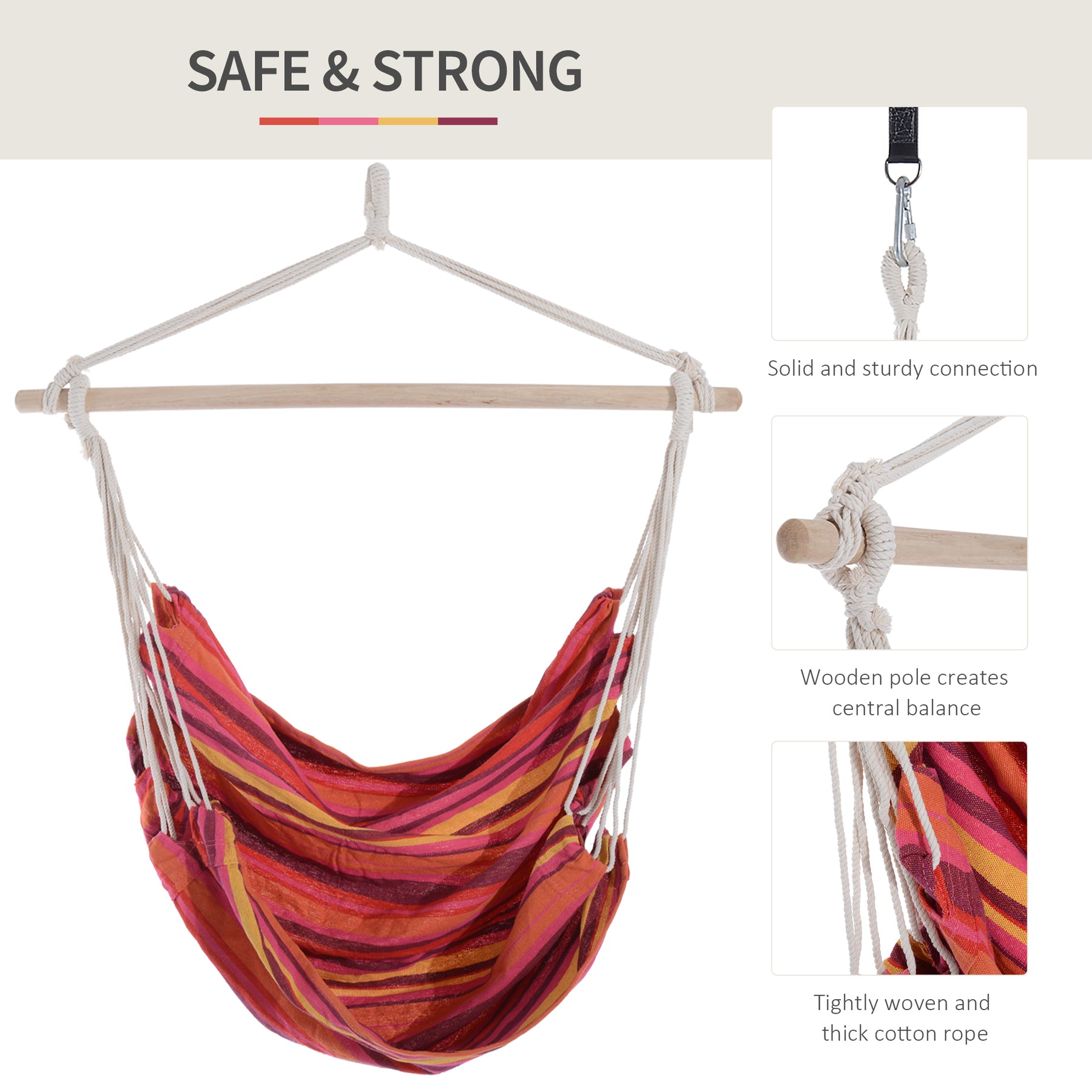 MCL Outdoor Hanging Rope Chair with Cotton Rope, Garden Hammock Chair with Wooden Support Bar Cotton Cloth, Portable Garden Chair for Patio & Tree, Red