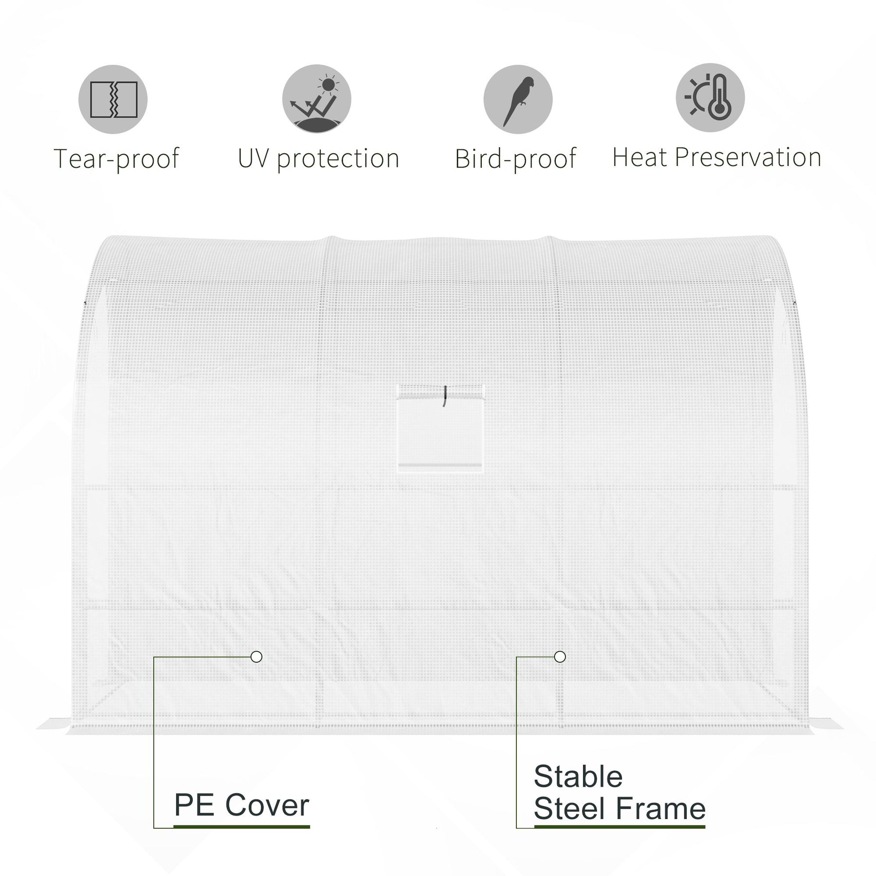 MCL Outdoor Walk-In Greenhouse, Plant Nursery with Zippered Doors, PE Cover and 3-Tier Shelves, White, 300 x 150 x 213 cm