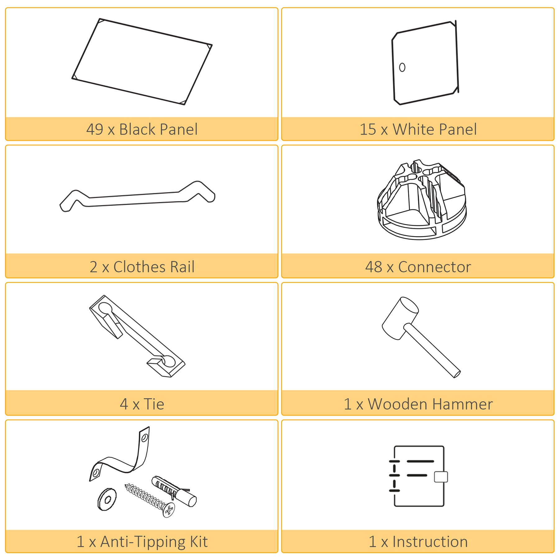 MCL Portable Wardrobe for Bedroom, 15 Cube Closet with Hanging Rail, Modular Storage Cabinet, Plastic Armoire for Space Saving, White and Black