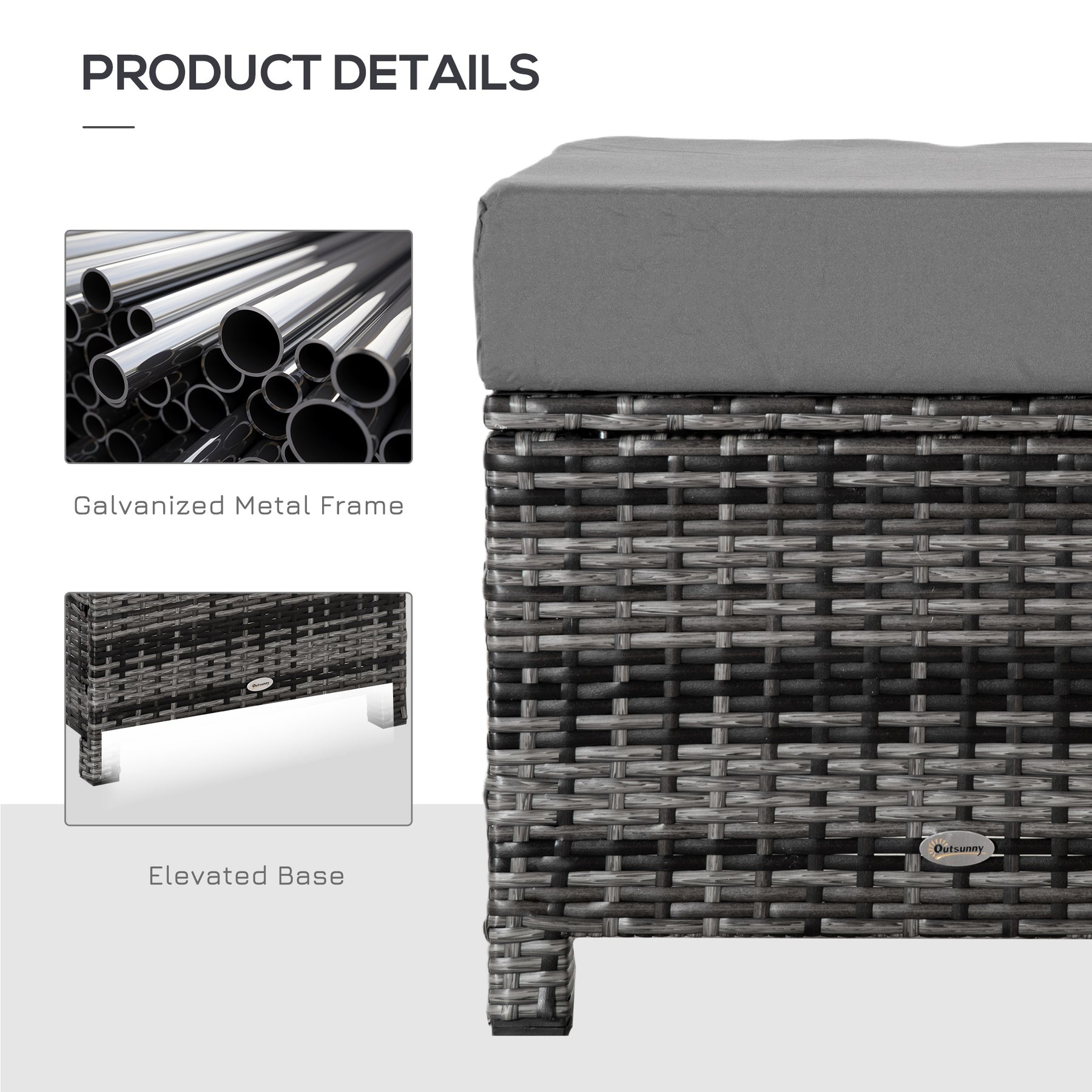 MCL Rattan Footstool Wicker Ottoman with Padded Seat Cushion Outdoor Patio Furniture for Garden Poolside Living Room, 50 x 50 x 35 cm, Grey