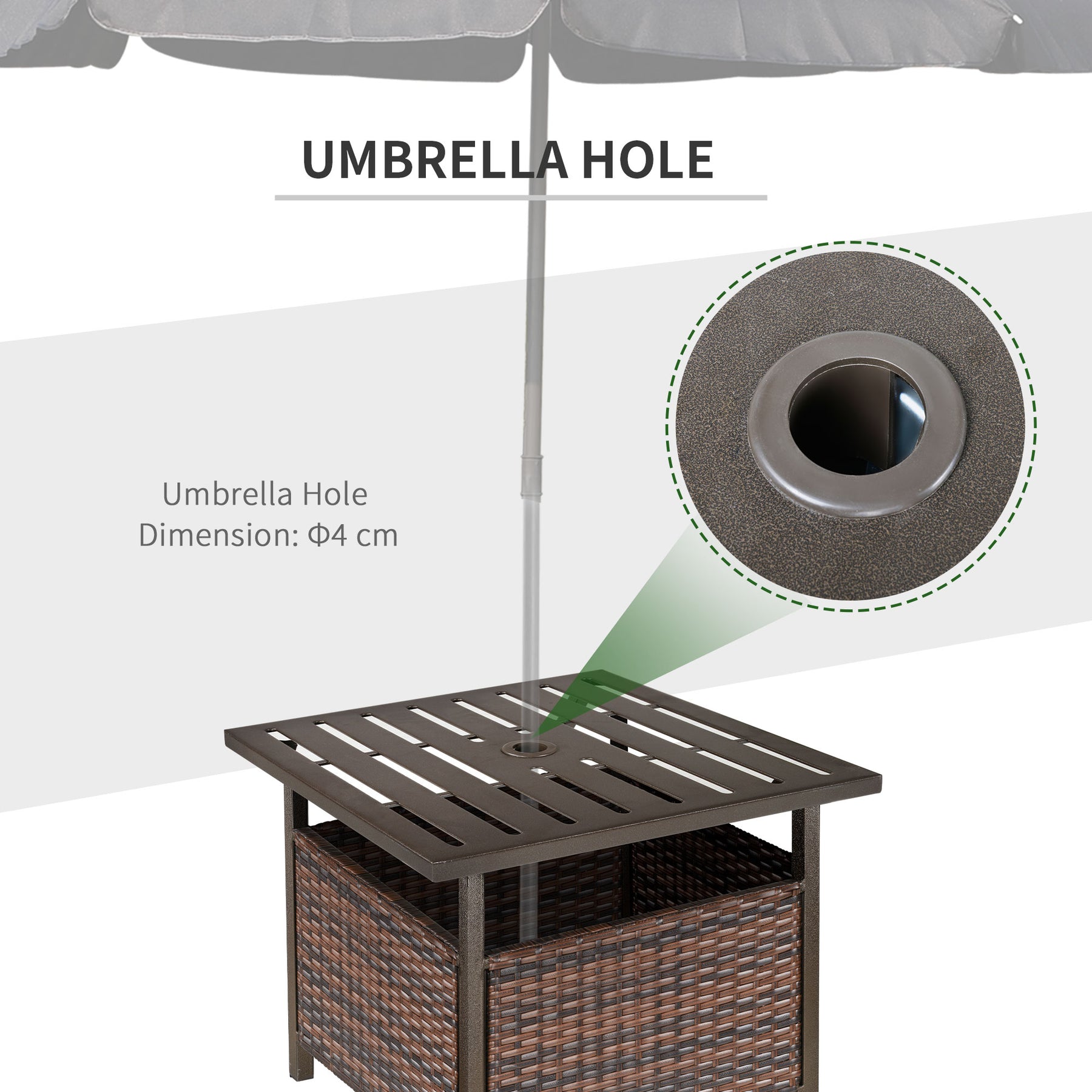 MCL Rattan Garden Coffee Table, 55.5 cm Square Wicker Patio Side Coffee Table with 4 cm Umbrella Hole, Metal Bottom and Slatted Top for Outdoor, Balcony, Brown