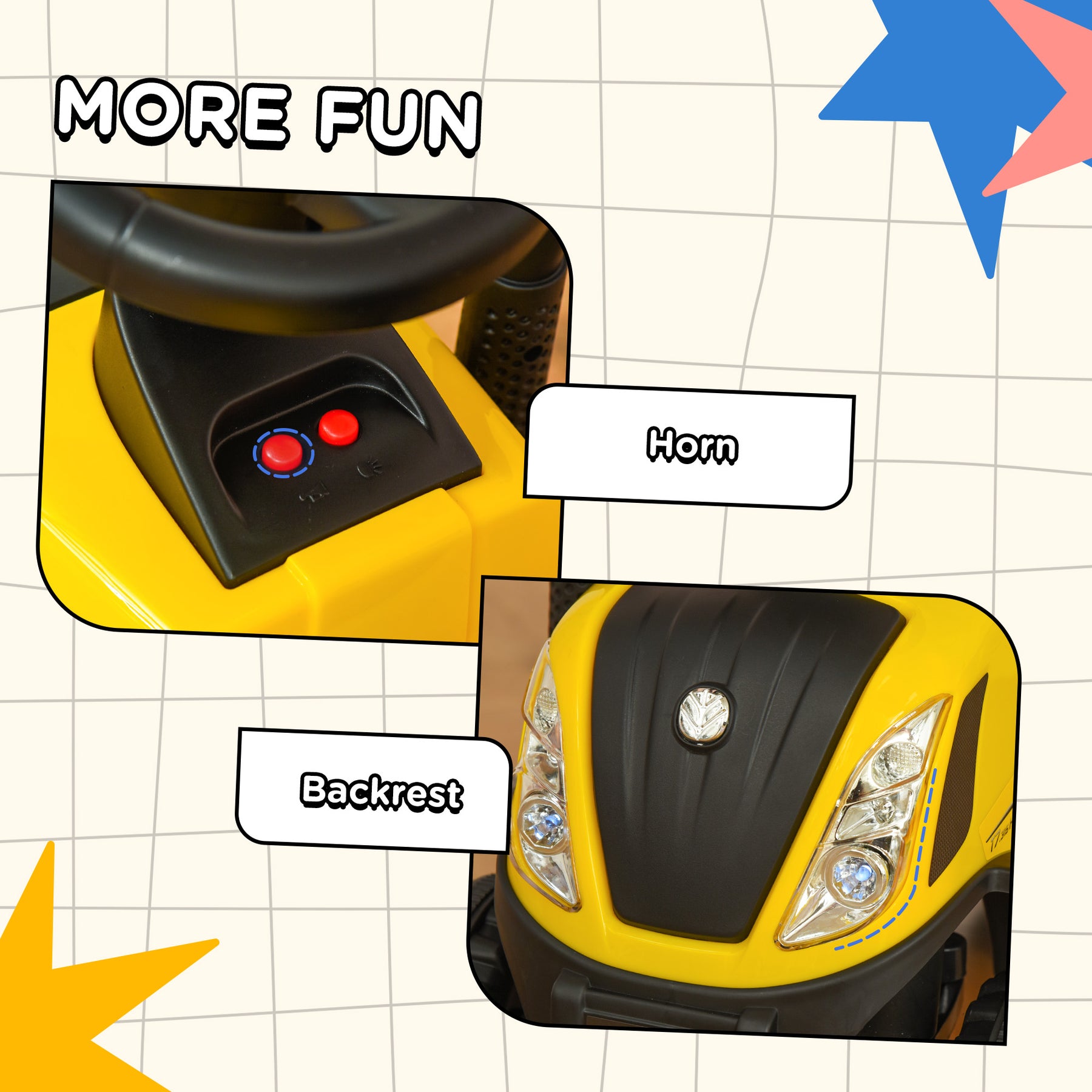 - Horn and lights for realistic fun