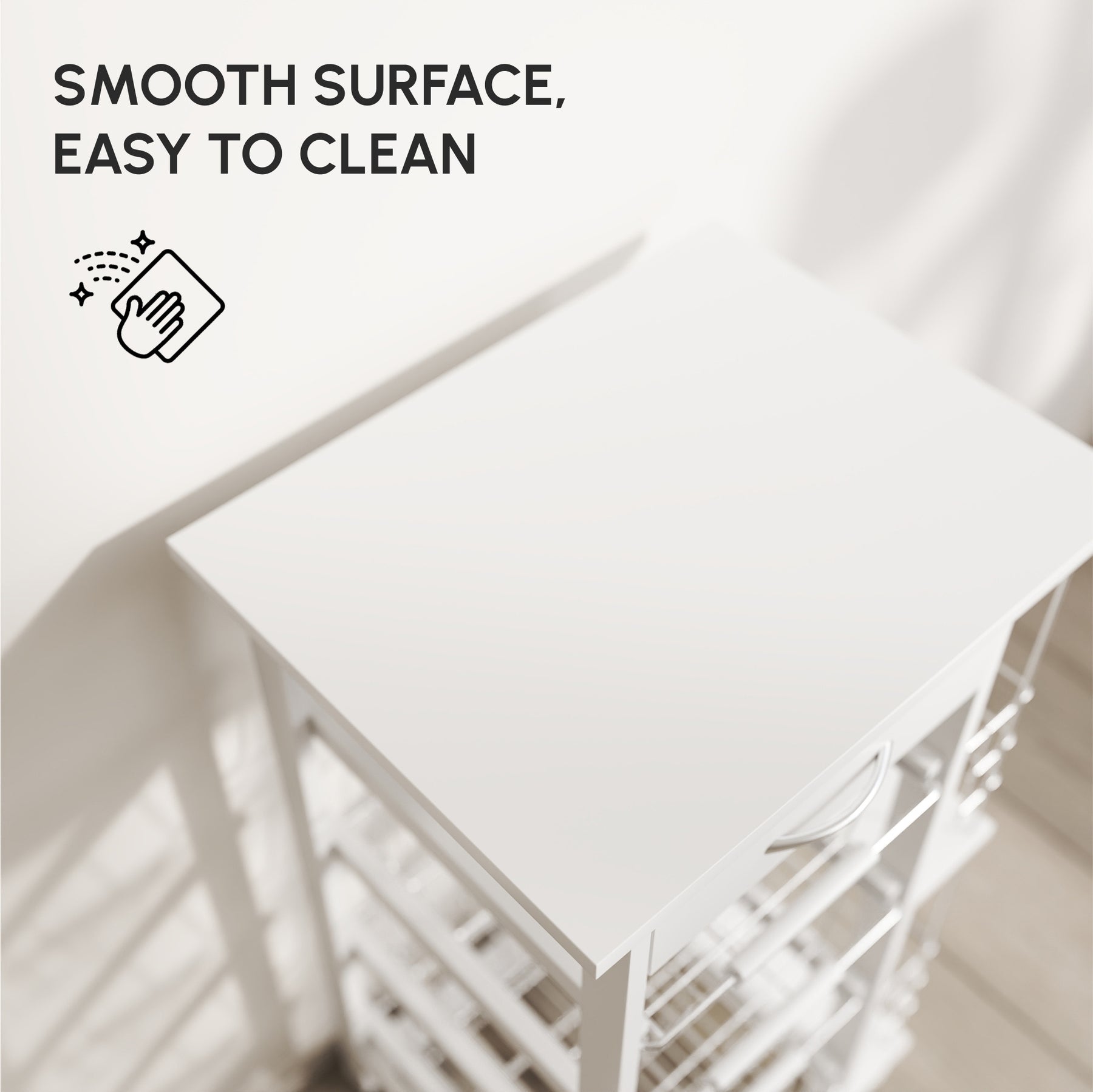 MCL Rolling Kitchen Cart, Utility Storage Cart with 4 Basket Drawers & Side Racks, Wheels for Dining Room, White