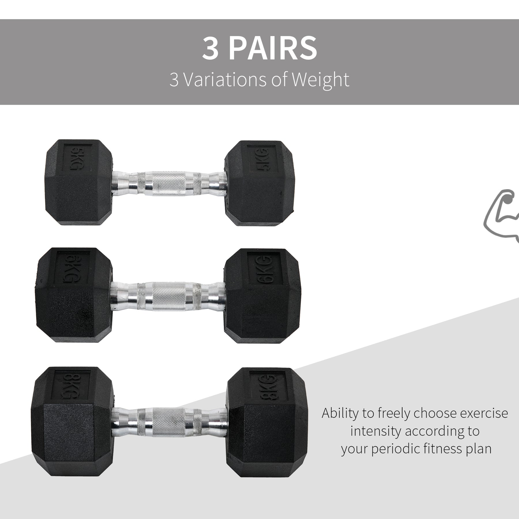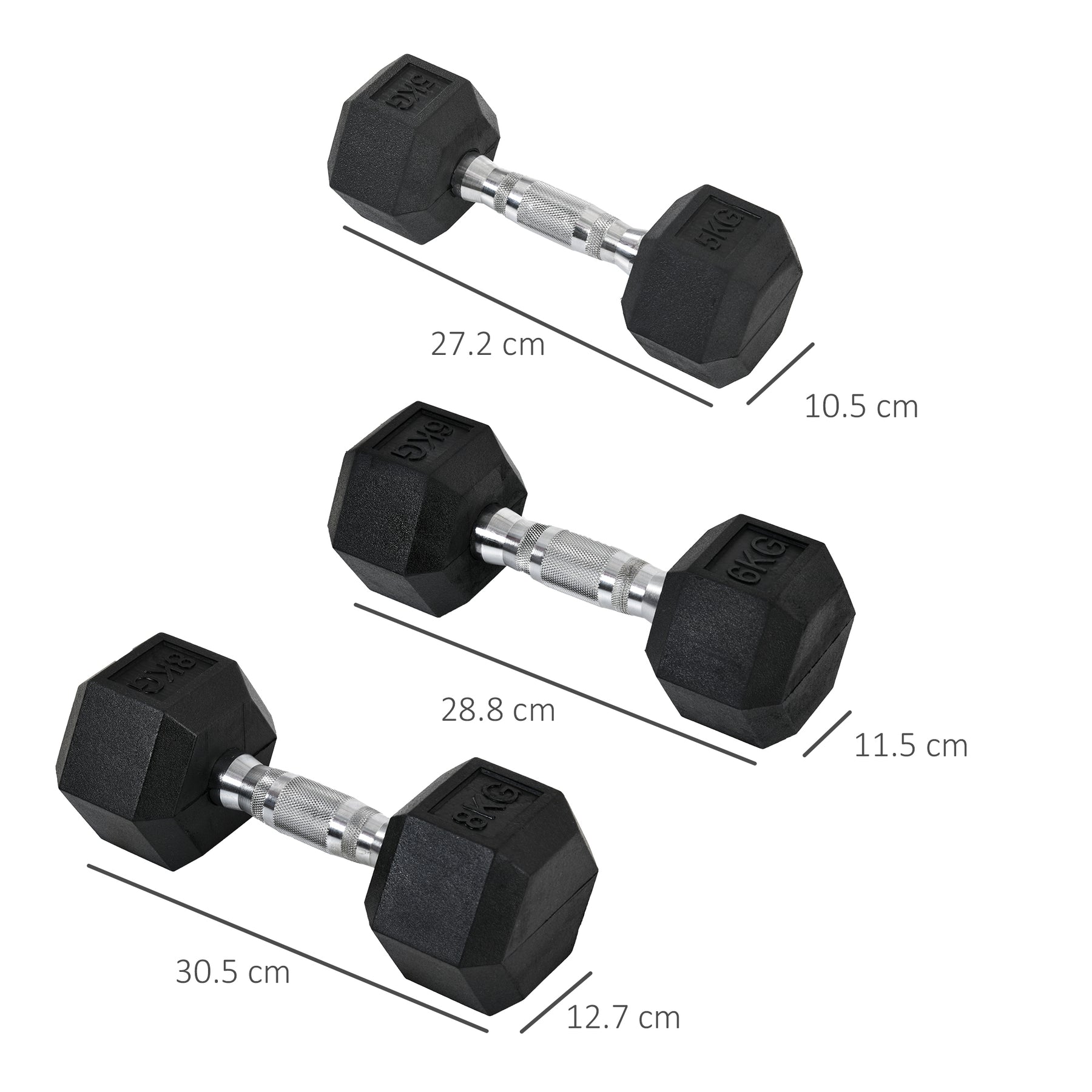 MCL Rubber Dumbbell Set Sports Hex Weight Sets Home Gym Fitness Lift Strength Training Exercise 2 x 5kg, 2 x 6kg, 2 x 8kg