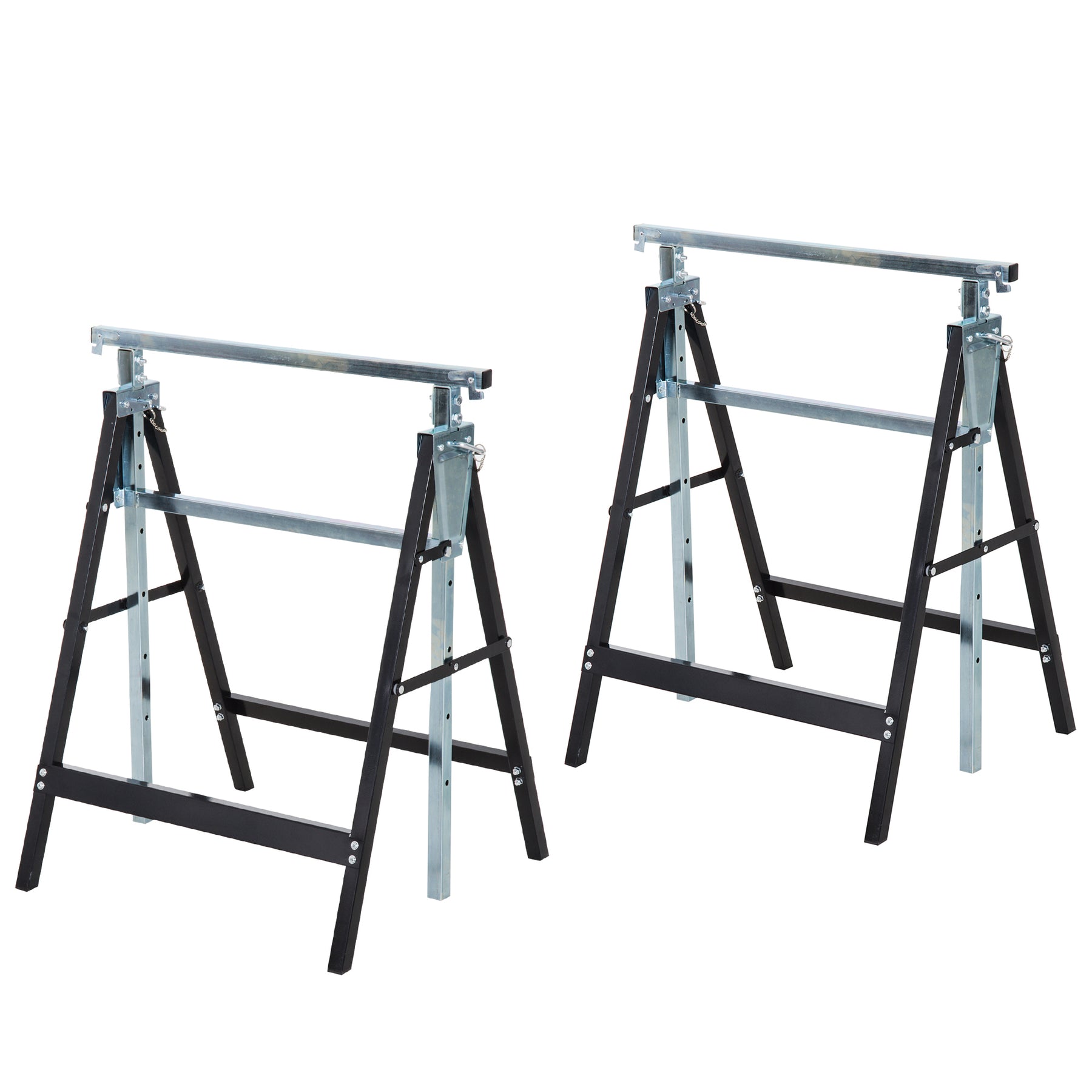 MCL Set of 2 Adjustable Telescopic Builders Trestle, DIY Steel Work Bench Carpenter, Folding Saw Horse Tools Black