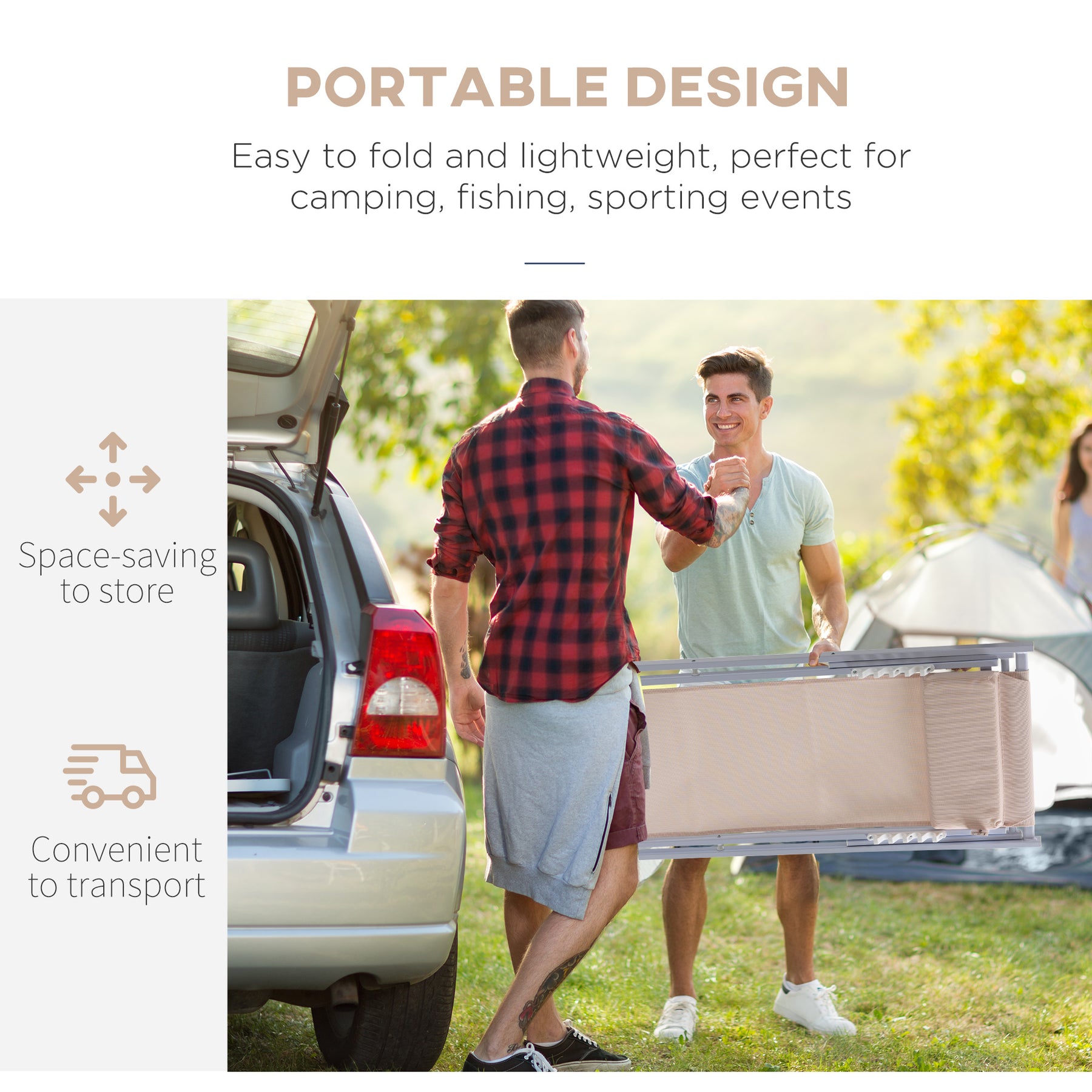 MCL Set of 2 Folding Garden Beach Aluminium Frame Deck Chairs Deckchairs Seaside Folding Garden Patio Lounger, Beige
