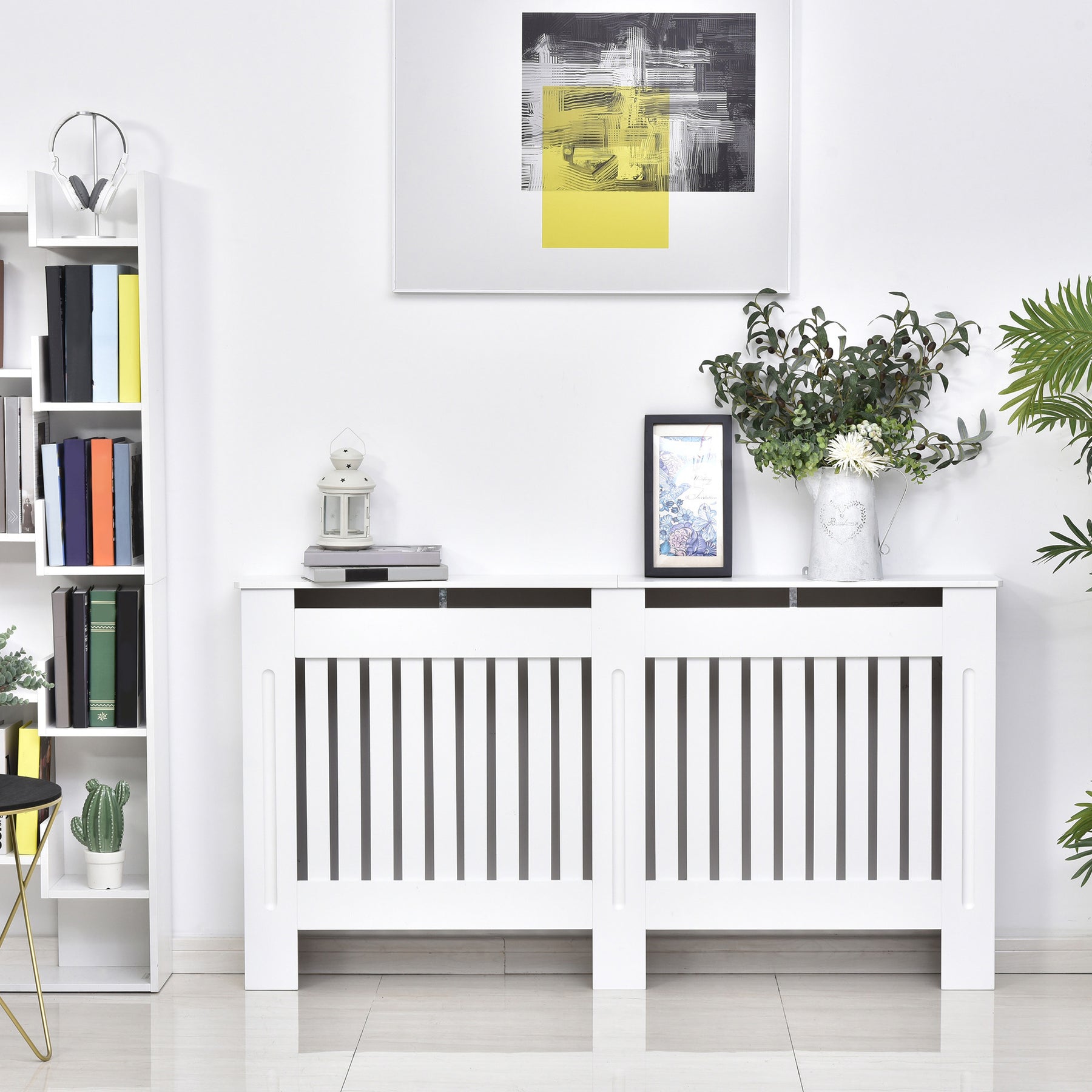 This MDF radiator cover from MCL is a practical addition to any home, covering unsightly radiators and give a modern look with a storage top for decoration. Made from MDF board in white colour, it is designed to perfectly blend into most home decors. The front slatted design ensures radiator heat efficiently and helps prevent children or pets from accidental contact with a hot radiator surface. Our radiator screen is a stylish and functional addition to your living room, hallway and more.