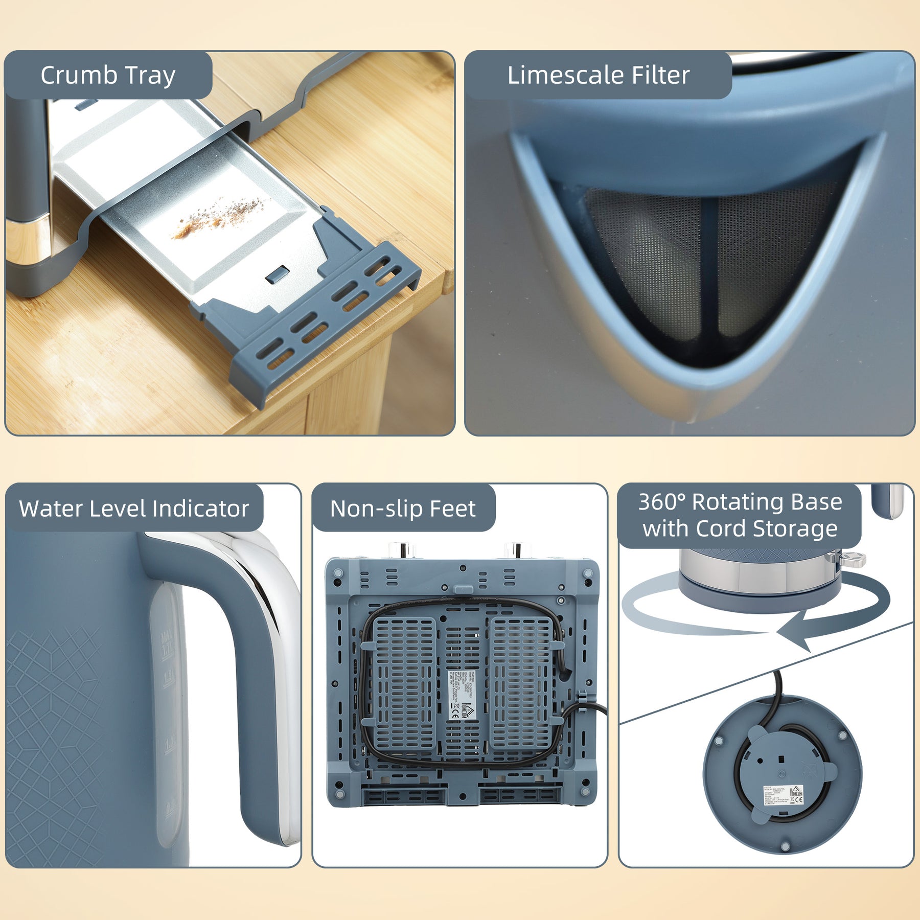 - Powerful 3000W kettle and 1860W toaster quickly prepares your breakfast