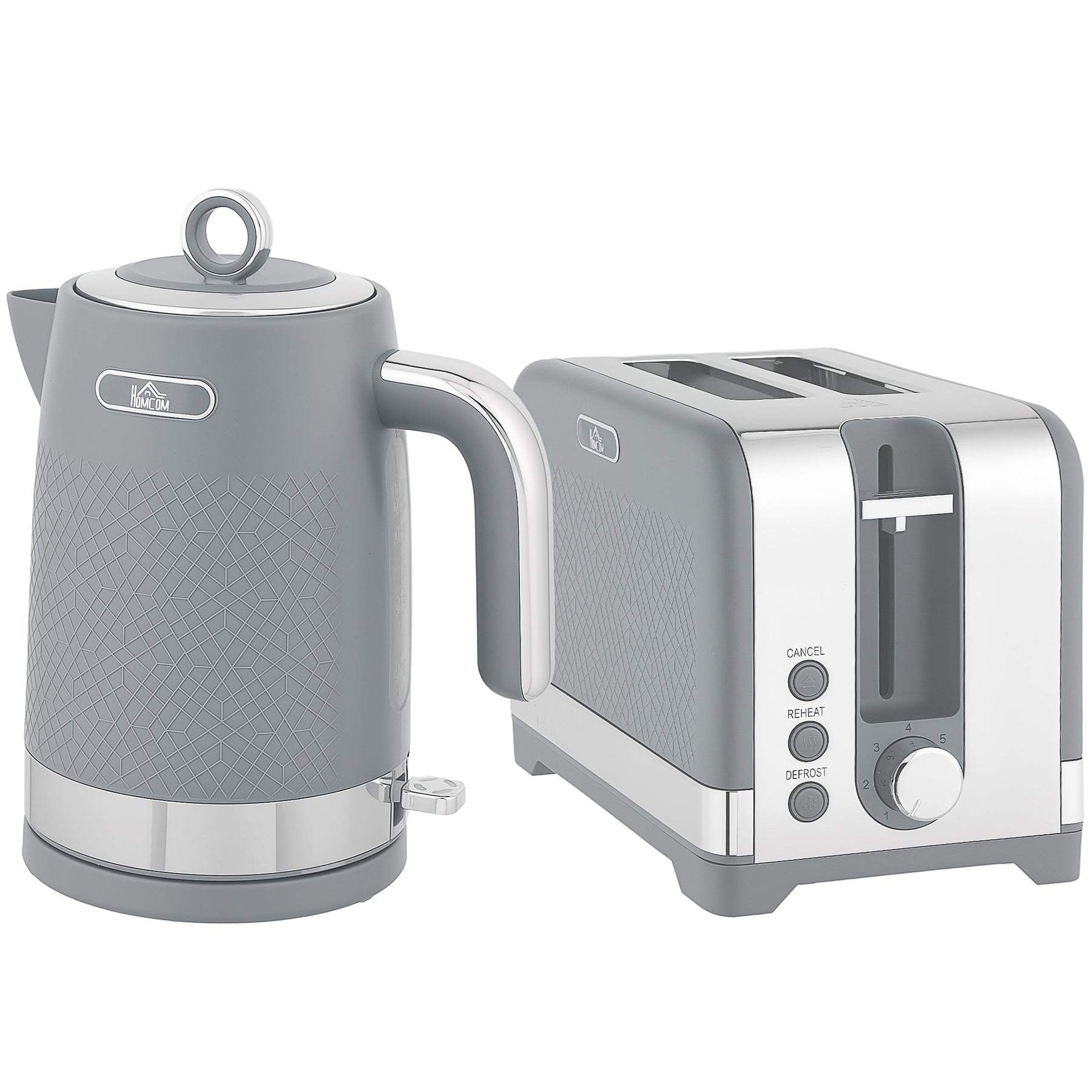 Super sleek, with a touch of texture: welcome this MCL kettle and toaster set onto countertops. Both pieces blend a curved shape, with polished metal accents and in a matte colour finish with a touch of texture - a distinctive set for your kitchen. Fitted with an Otter thermostat, the 1.7L kettle boils water within minutes, so everyone can enjoy a hot drink quickly. The wide slot two-slice toaster has seven browning levels to enjoy just how you like it.