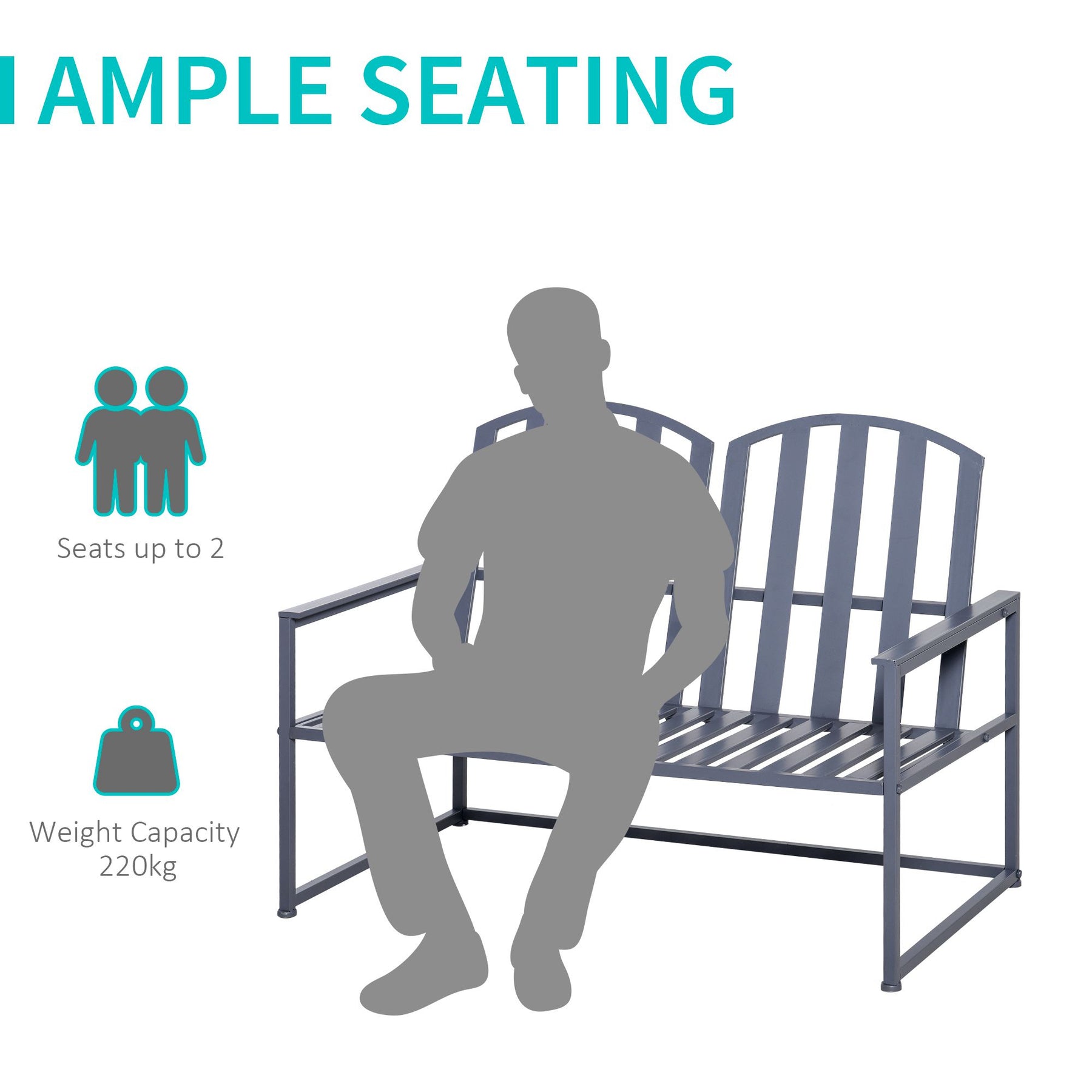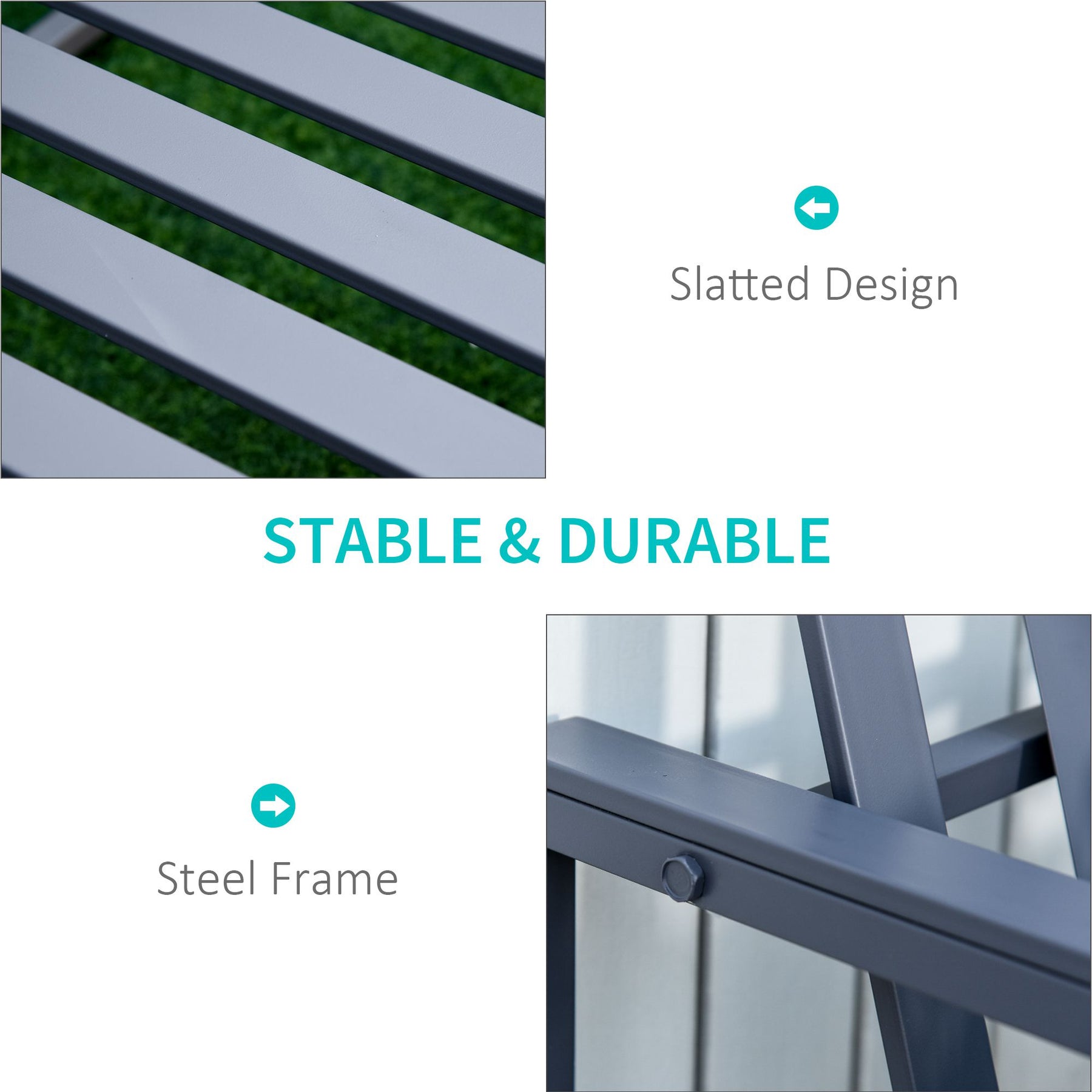 MCL Steel Patio Garden Bench Loveseats for Outdoors Park Yard Slatted Design Grey